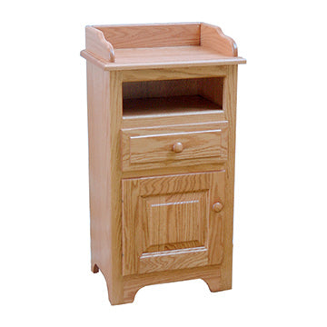 This telephone stand is a one-of-a-kind piece designed to keep your organized and add a classic piece of Amish-crafted furniture to your entryway, kitchen, or office space. This unique, handmade telephone stand has an open shelf at the top to place a telephone along with a cubby-style shelf beneath to place items like pen and paper that need to be within reach. This Amish-crafted telephone stand offers additional storage with a single drawer and a cabinet beneath it, both featuring a paneled design for a rustic look. Measuring 17" wide by 12" deep by 32 1/4" high, this manageable American-made piece fits easily into any room in your home. Shown in red oak, this organizational stand comes in several woods and finishes to suit your needs, including oak, cherry, maple, and hickory. All of the solid wood furniture from Barn Furniture Mart is stain and water resistant, is made in the USA, and comes with a satisfaction guarantee