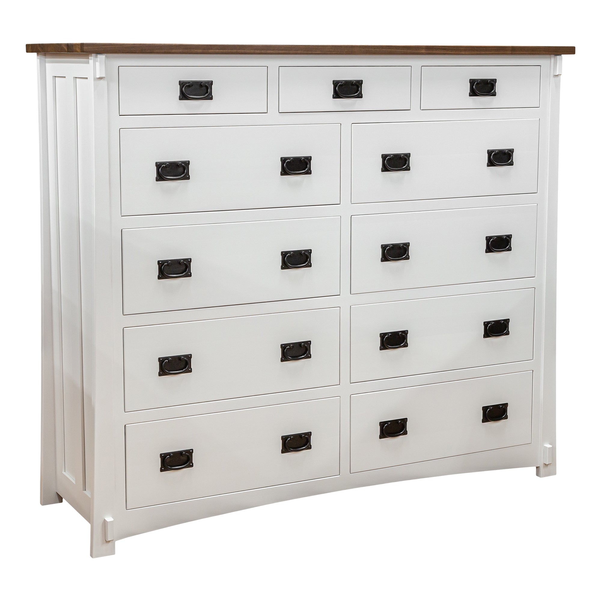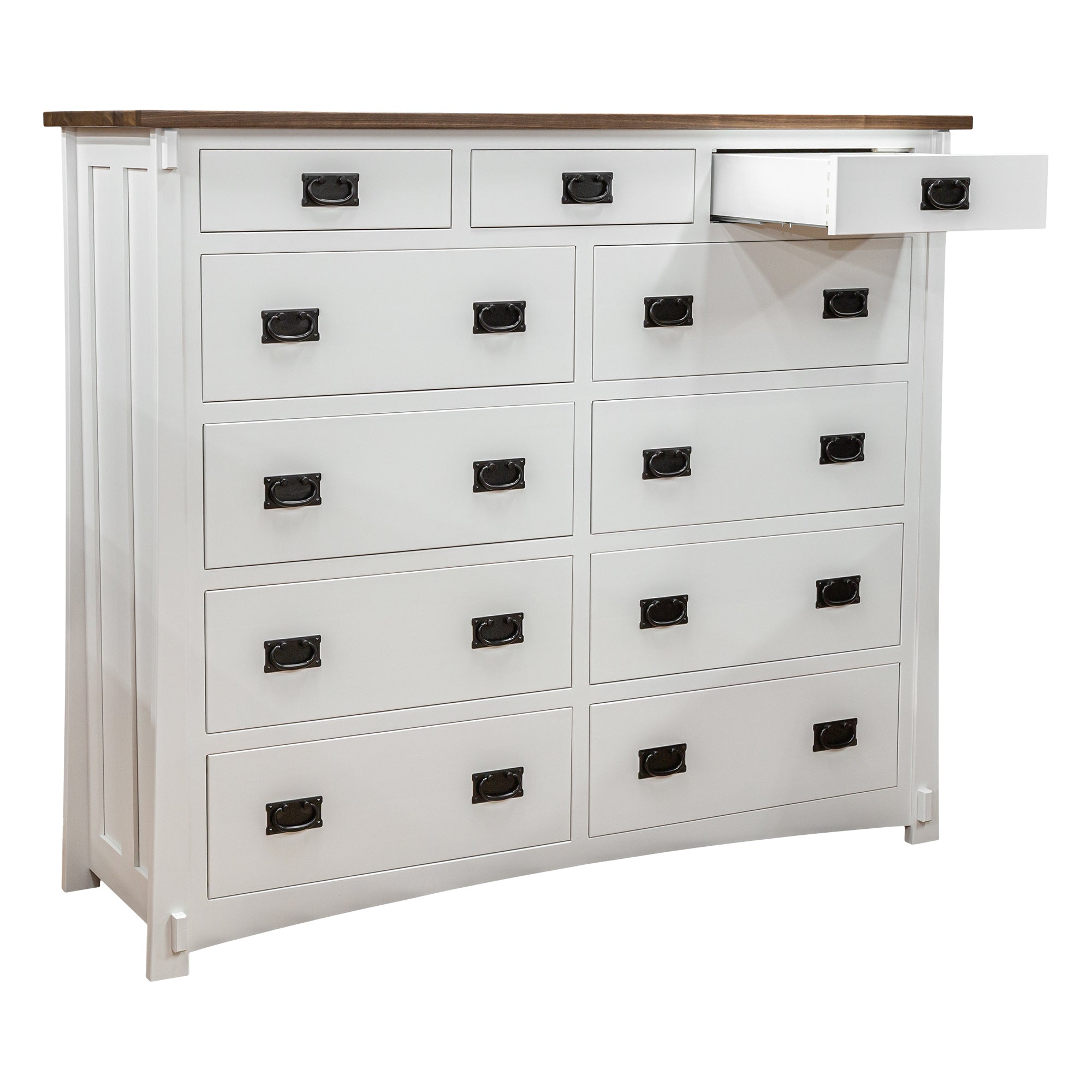 This Amish-crafted 11-Drawer Brown Maple Dresser features solid drawers that include traditional English dovetail joints. The drawers sit on full-extension under-mount soft-close drawer guides that easily glide open and shut with no exertion necessary. This piece is sealed with a conversion varnish that protects it from water, alcohol and even nail polish remover.