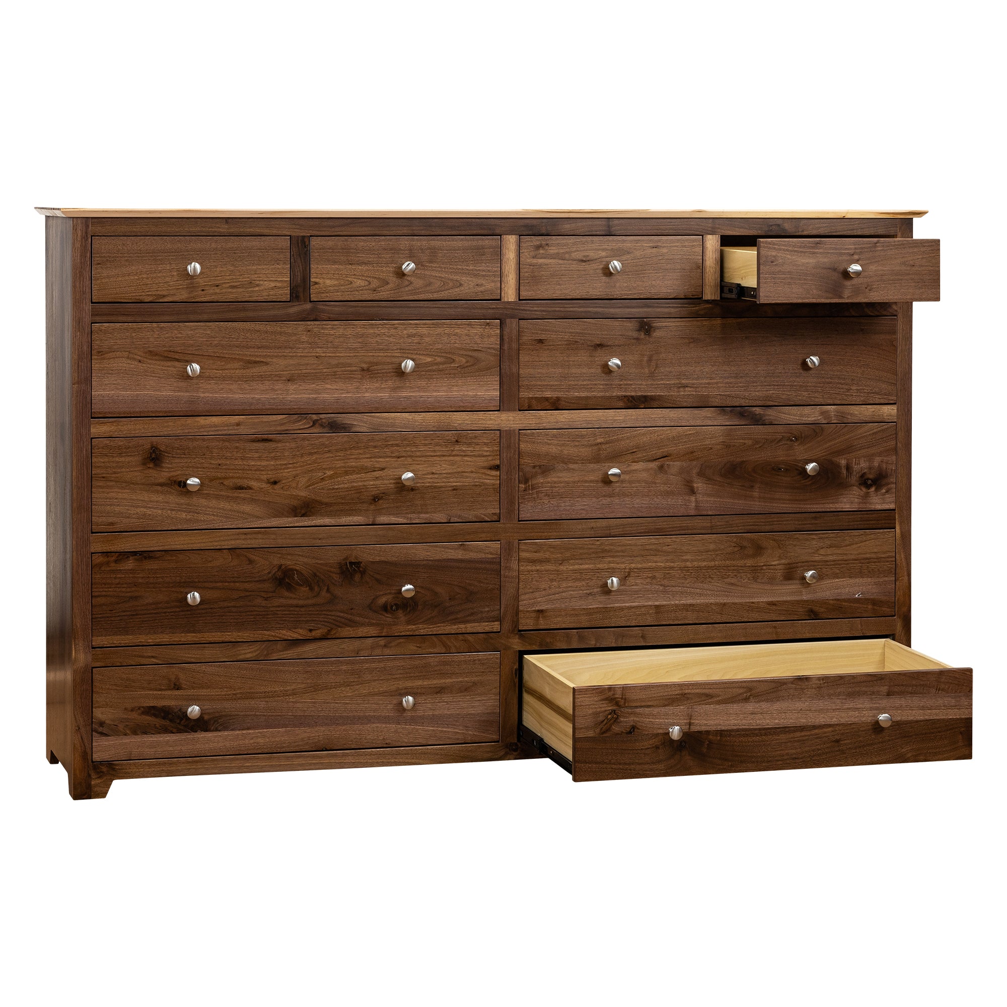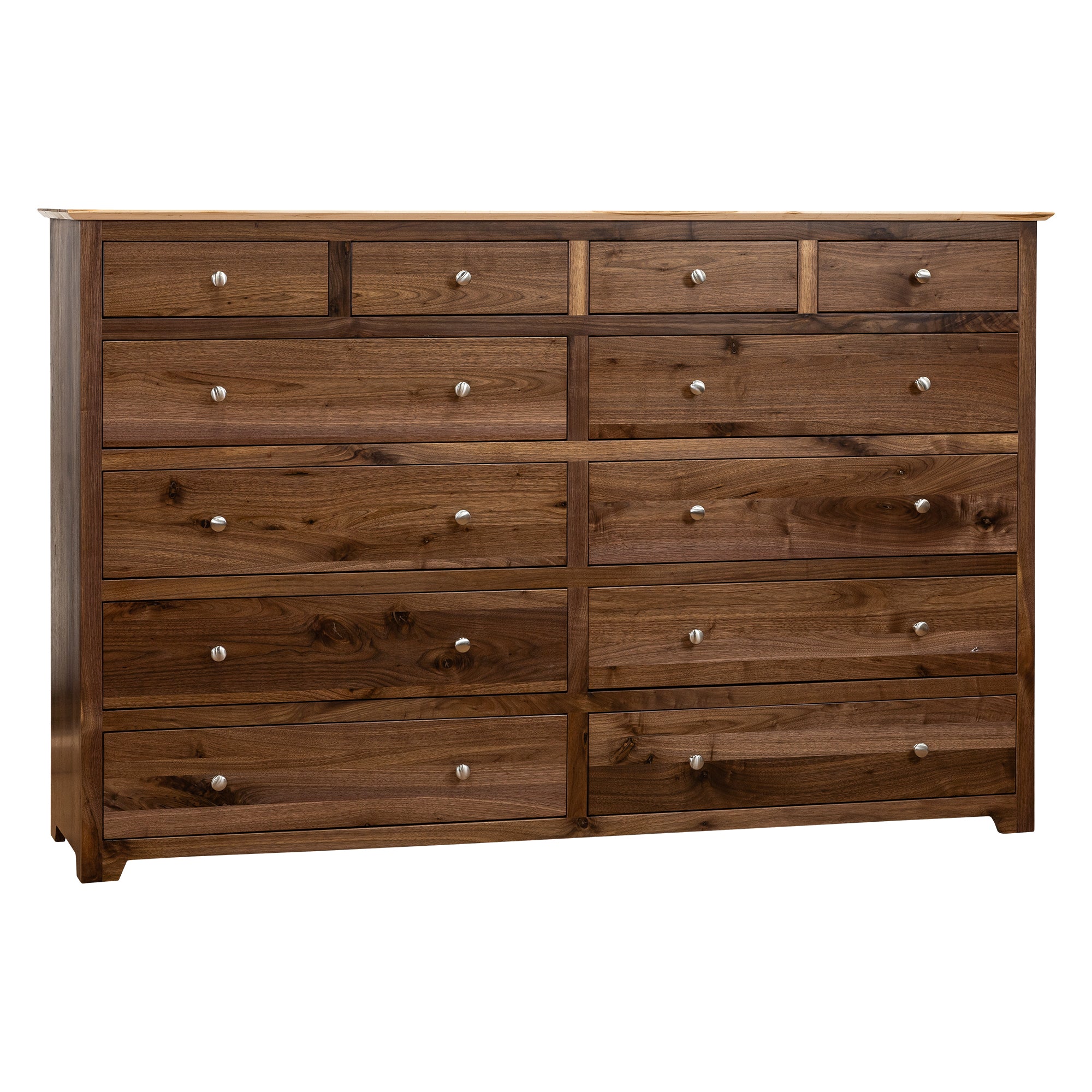 Our distinctive YC series of dressers and chests have a hint of "Arts and Crafts" and yet "Mid Century" details and materials. We use Walnut Solids and distinctive Wormy Maple contrasts. Available in all Walnut or any way you like. Note distinctive brushed nickel hardware. There are also different hardware alternatives.
