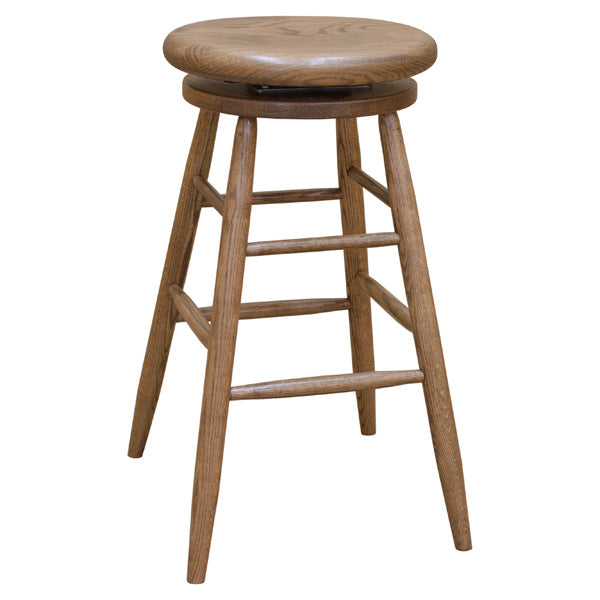 This stylish 30? swivel barstool is skillfully constructed by highly experienced Amish Craftsmen in the Heartland of America. This Bar Chair is constructed from solid Red Oak (shown) and finished in a California Medium Finish.This great 30" Solid Oak Swivel Barstool has an Extra thick 2" swivel seat and sturdy solid oak construction.