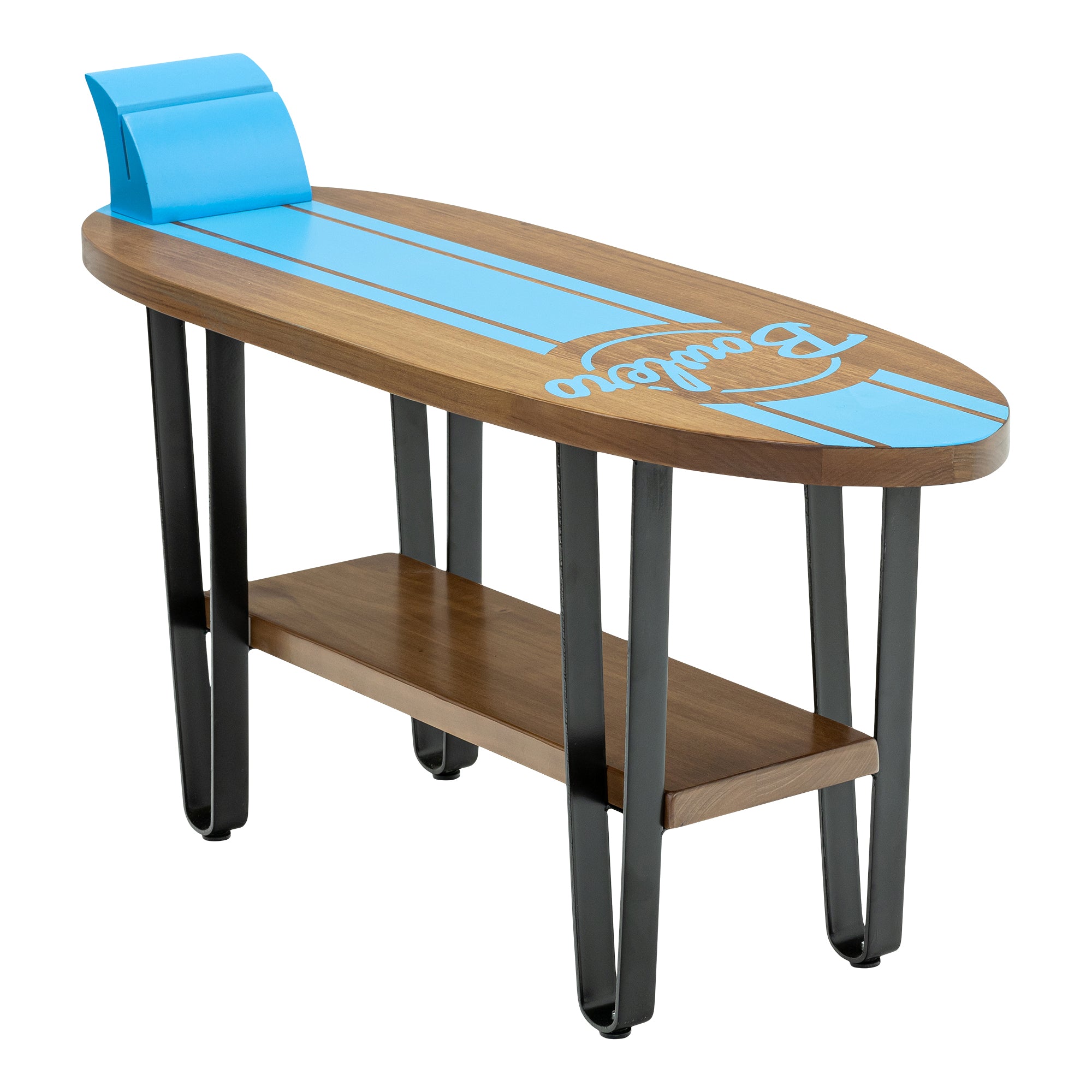 Material : Solid American Poplar Wood Dimension : 16W" x 48L" x 22"H -Blue Logo -Metal Square Base In Black -U-Shaped Legs -Indoor Use Only