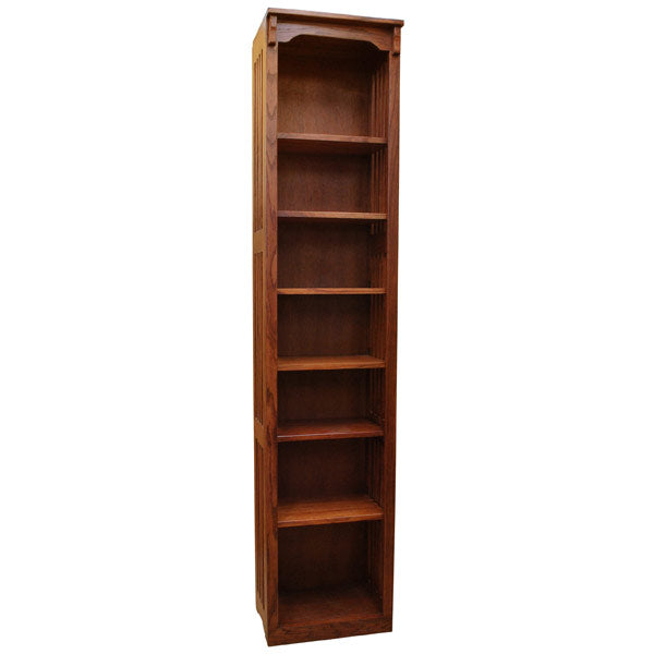 This 18? x 84? Solid Oak Mission Spindle Bookcase is proudly made in the United States from exceptional craftsmanship and remarkable quality. The design of this furniture creates a simple, yet elegant look. It is hand-made using solid oak (shown) with no particle boards; you can take pride in owning furniture built to the highest standards of quality.