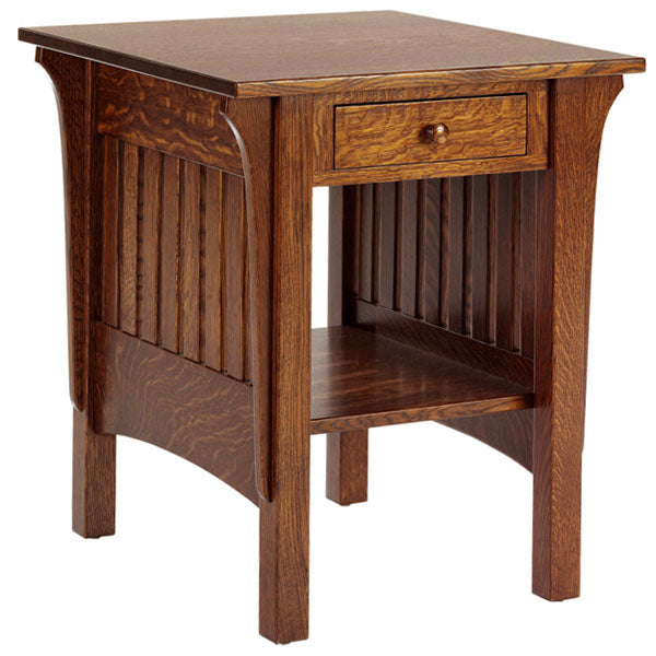 This 22" Amish End Table w/ Drawer boasts an unparalleled level of craftsmanship in handmade furniture. Skillfully constructed by highly experienced Amish craftsmen using solid Quarter Sawn White Oak (shown), you can take pride in owning furniture built to the highest standards with the strictest attention to detail.
