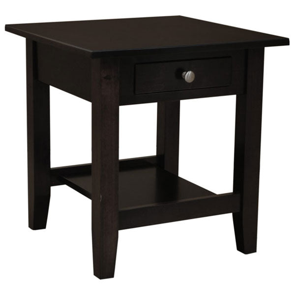 This Amish 22" x 22" Dark Finish, Brown Maple End Table w/ Drawer is skillfully constructed in the United States by highly experienced Amish Craftsmen using Solid Brown Maple and finished in Onyx Finish(shown). This Amish made End Table boasts an unparalleled level of craftsmanship in handmade furniture and you can take pride in owning furniture built to the highest standards and with the strictest attention to detail.