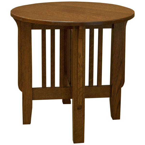 This 24" x 23" Round Amish Mission Spindle End Table is an elegant piece with so much character and detail that it will stand out as part of your living room. Constructed out of hand selected Solid Oak; by skilled Amish craftsmen in the heartland of America. This end table is treated with a conversion varnish that protects against water, oil and even nail polish stains. This end table will be a lovely addition to your living room.