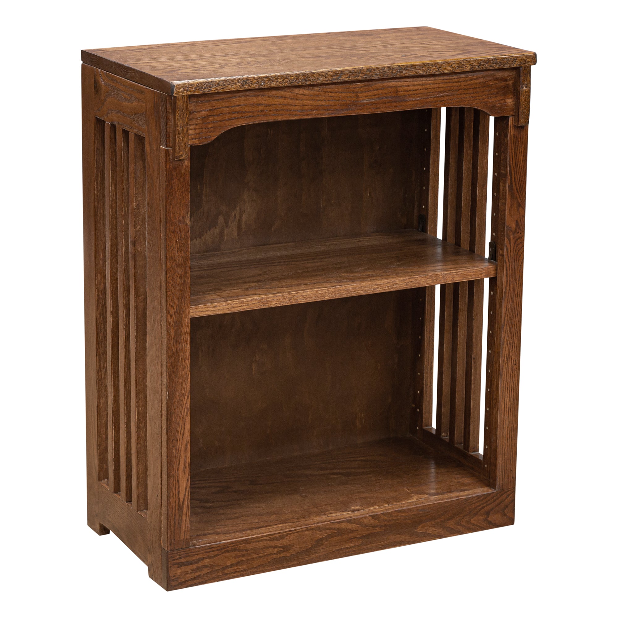 Utilitarian yet aesthetic, this solid oak 24? x 30?, 2 shelf, mission spindle bookcase is nostalgic of the Arts and Crafts movement. In perfect Arts and Crafts fashion of distinctive functionality and undeniable durability, flush sides allow this piece to sit completely adjacent to another wall unit.