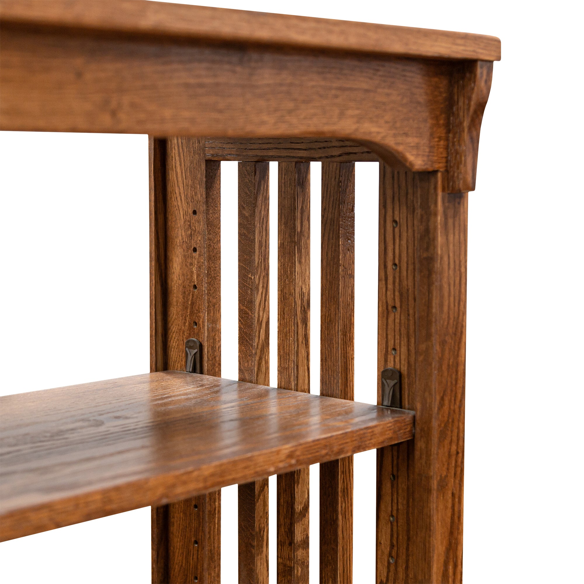 Utilitarian yet aesthetic, this solid oak 24" x 48", 4 shelves, mission spindle bookcase is nostalgic of the Arts and Crafts movement. In perfect Arts and Crafts fashion of distinctive functionality and undeniable durability, flush sides allow this piece to sit completely adjacent to another wall unit.