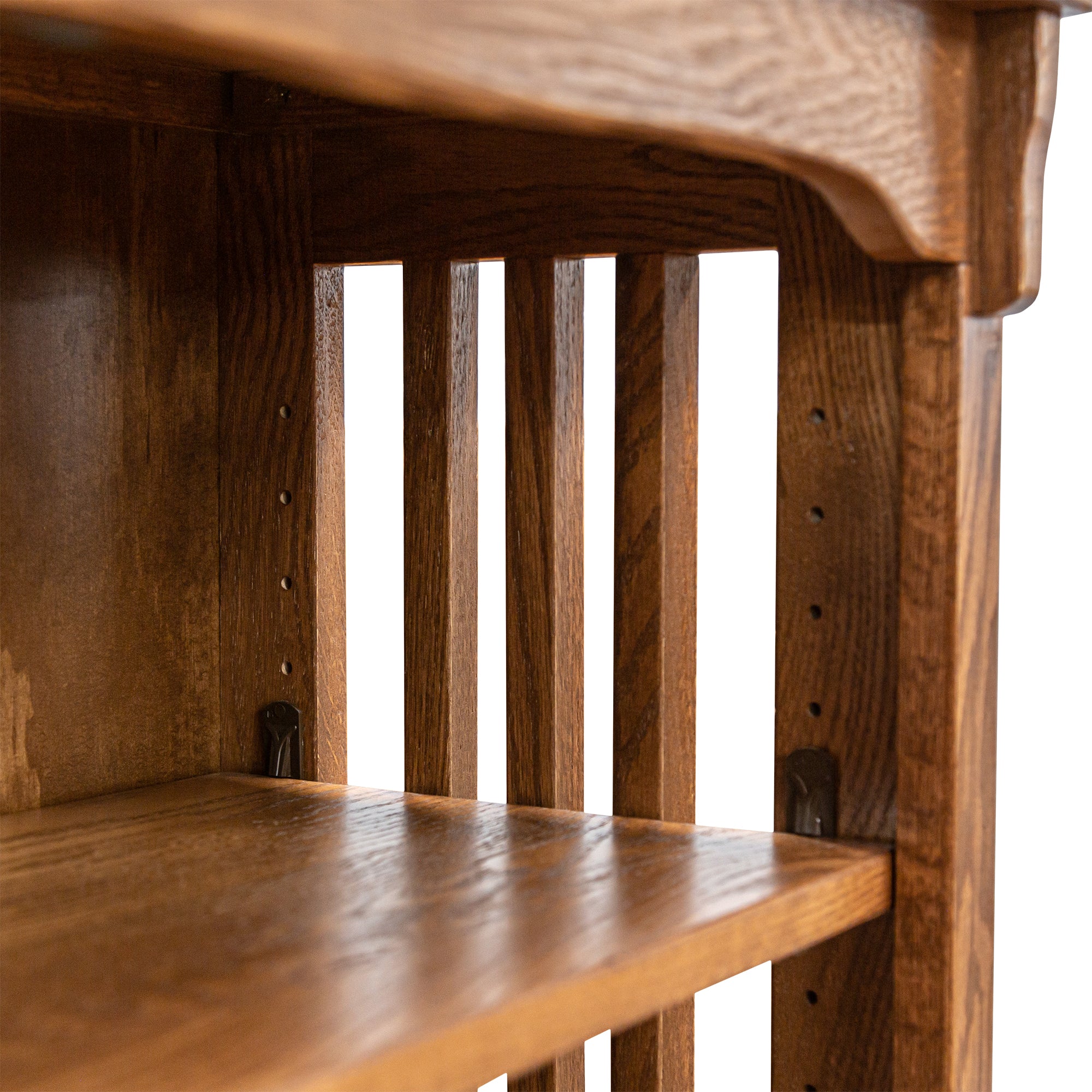 This Mission Spindle Oak Bookcase w/ Doors in Mission Cherry is proudly made in the United States for exceptional craftsmanship and remarkable quality. The design of this furniture creates a simple, yet elegant look. Hand made using oak (shown) with no particle boards, you can take pride in owning furniture built to the highest standards of quality.