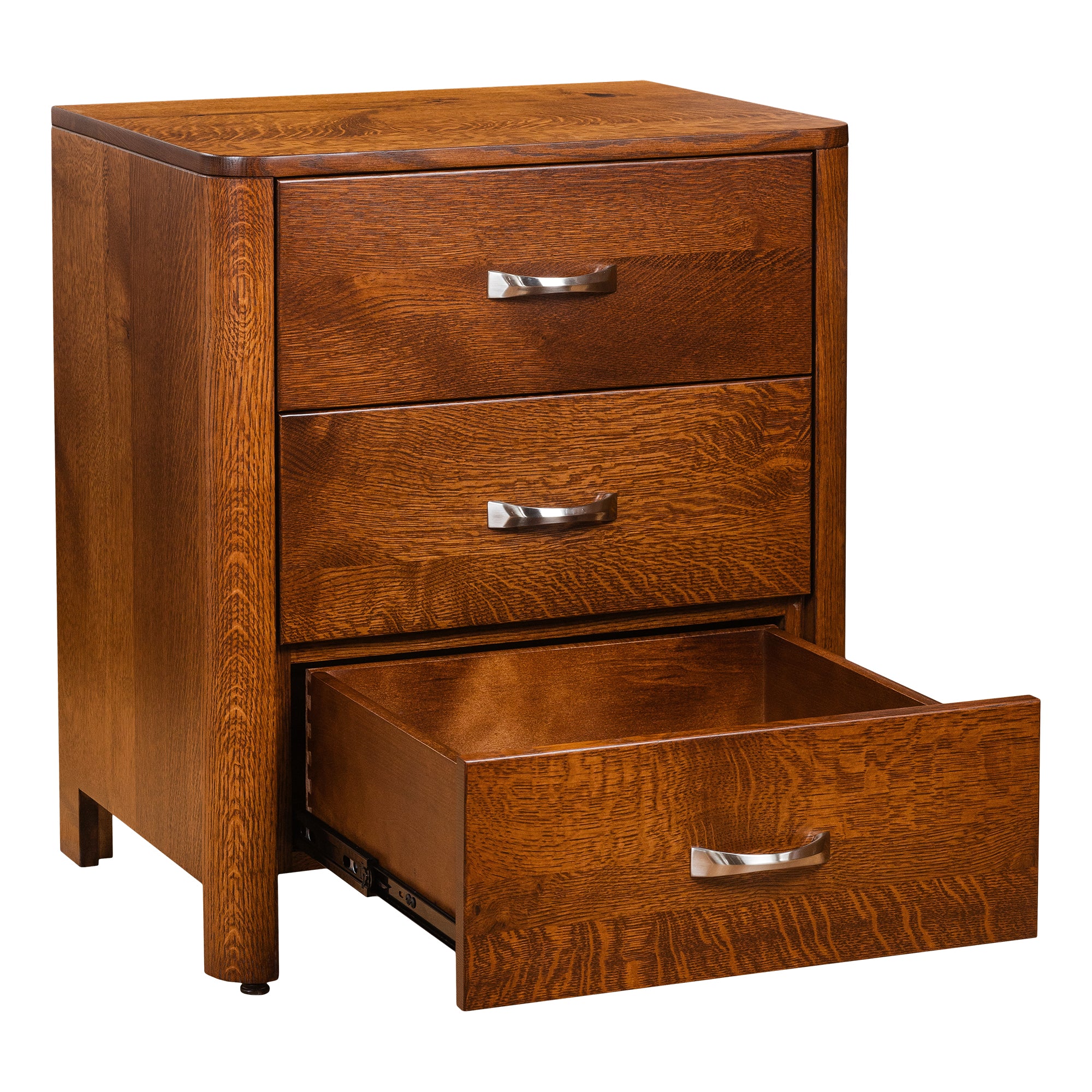 Elevate your bedroom with this handcrafted solid wood 3 - Drawer Melbourn Nightstand built for both beauty and everyday functionality. Its rich, warm finish highlights the natural grain patterns, while sleek metal hardware adds a modern touch. With nine spacious, smooth-gliding drawers, this dresser offers generous storage for clothing, linens, and essentials. Designed with durability and timeless style in mind, it’s a perfect blend of craftsmanship and practicality—made to last for years to come.