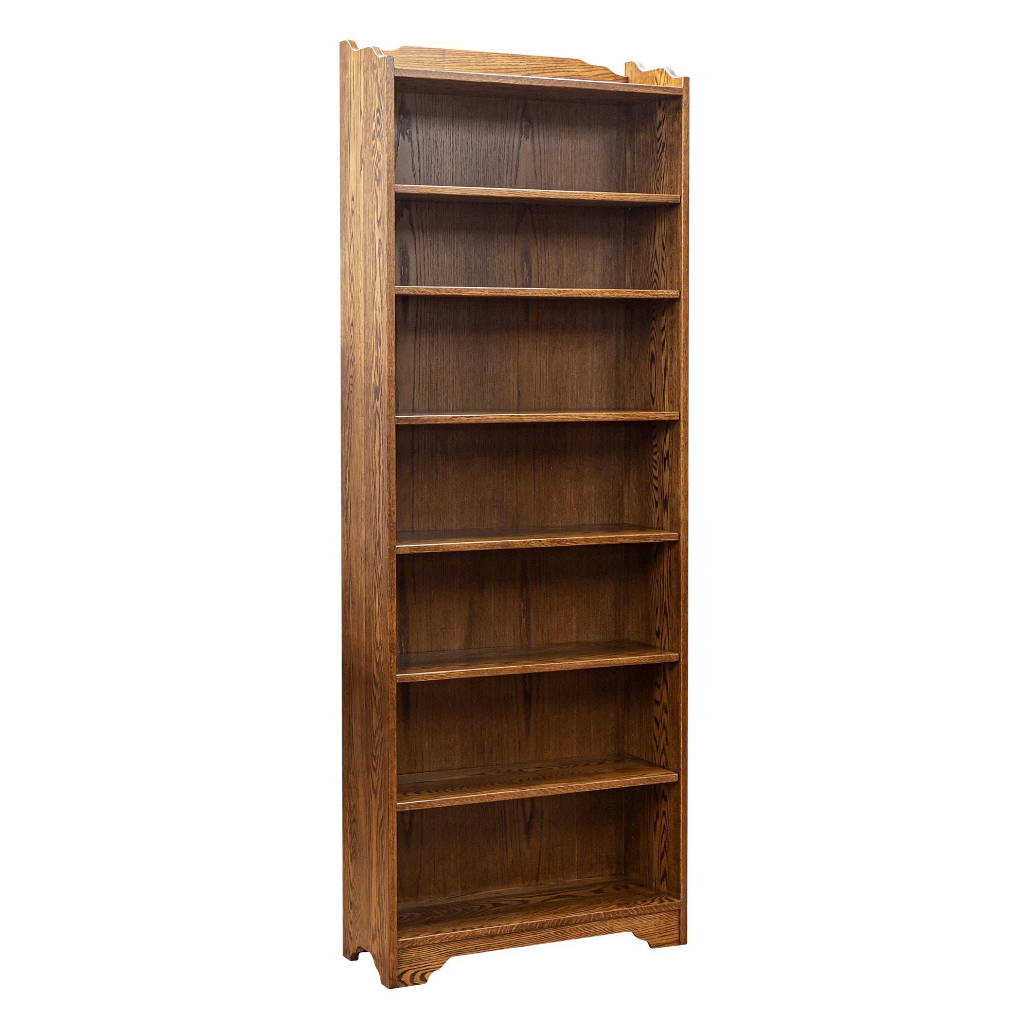 Utilitarian yet aesthetic, this solid oak 30" x 84", Green Ridge Bookcase is nostalgic of the Arts and Crafts movement. In perfect Arts and Crafts fashion of distinctive functionality and undeniable durability, flush sides allow this piece to sit completely adjacent to another wall unit.