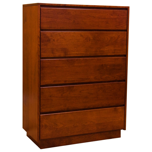 This 34" Amish Contemporary Canterbury 5-Drawer Chest piece is handcrafted in the Heartland of America. Constructed from hand selected rustic solid cherry wood. In addition, this unit features five solid oak drawers made with traditional English dovetail joints.
