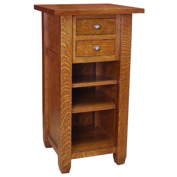 This 34" Amish Phone Stand boasts an unparalleled level of craftsmanship in handmade furniture. Skillfully constructed by highly experienced Amish craftsmen using solid Quarter Sawn White Oak (shown), you can take pride in owning furniture built to the highest standards with the strictest attention to detail.
