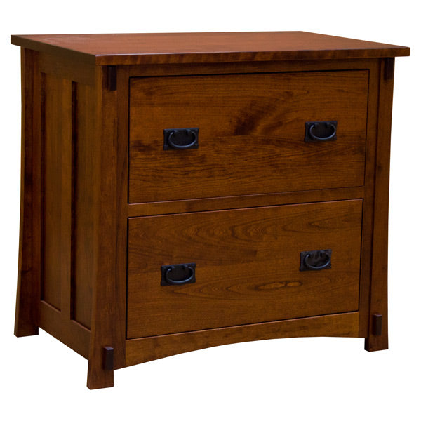 This 35" Amish Mission 2-Drawer Lateral File Cabinet is constructed skillfully in the United States by highly experienced Amish Craftsmen using Solid Cherry Wood(shown). This file cabinet is the perfect piece to keep your paper work-organized while adding elegance to your home office.