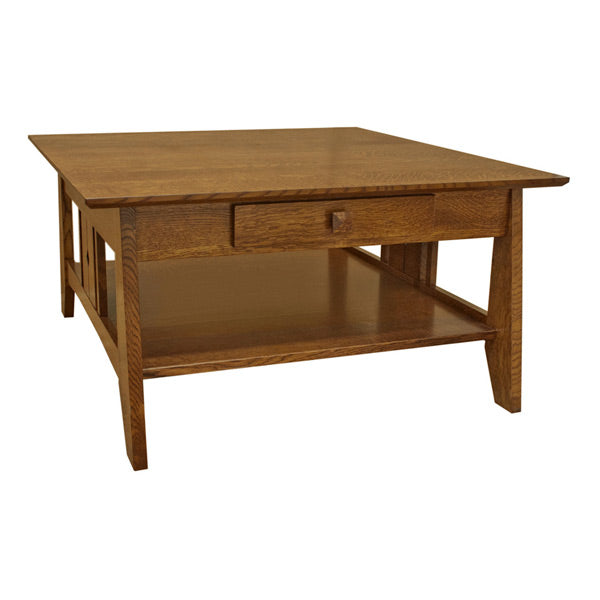 This 36" Amish Mission One Drawer Coffee Table reminiscent of the Crofter A-Frame design displays an elegance and simplicity that has stood the test of time. This Amish Coffee Table is built with solid Oak. You can take pride in owning furniture that is built to the highest standards and with the strictest attention to detail.
