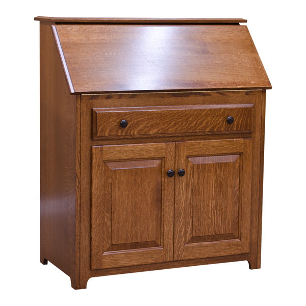 This 36? Amish Traditional Secretary Desk is proudly made in the United States by highly experienced Amish Craftsmen. It is constructed using hand selected solid Oak. This Amish handmade Desk boasts an unparalleled level of craftsmanship and you can take pride in owning furniture that's built to the highest standards and with the strictest attention to detail.