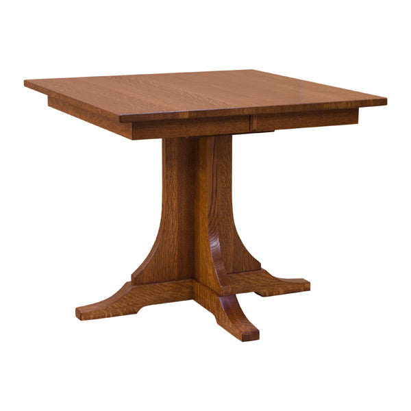 This lovely 36? x 36? Square Pedestal table is perfect for a small set-up and turn in to a larger table when there is company. This features an addition of up to (3) 12? leaves making this table to extend from 36? to 72?. This impressive table is constructed with high quality materials and built by skilled craftsman.