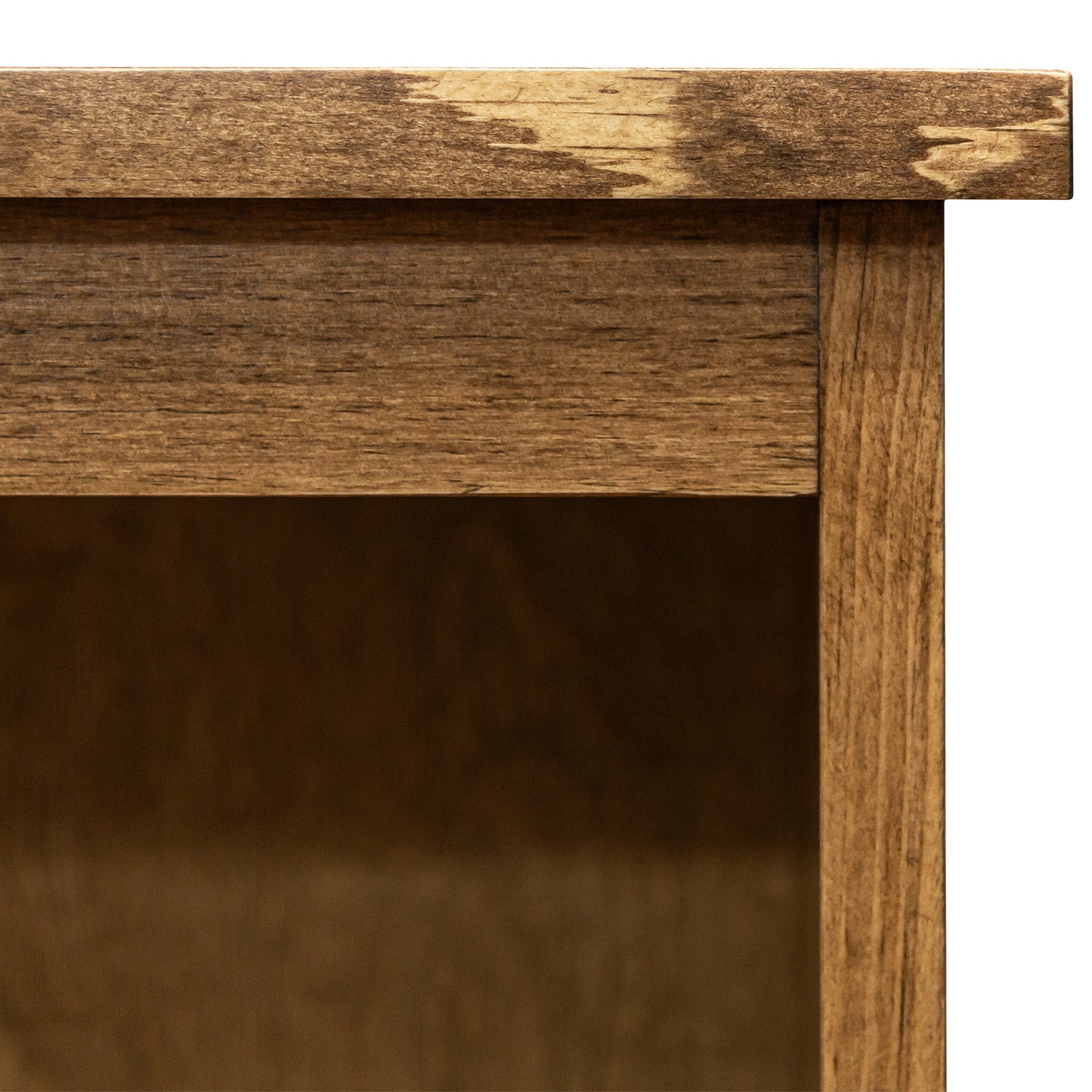 Utilitarian yet aesthetic, this 36" x 36", 1 shelf, pine bookcase is nostalgic of the Arts and Crafts movement. In perfect Arts and Crafts fashion of distinctive functionality and undeniable durability, flush sides allow this piece to sit completely adjacent to another wall unit.