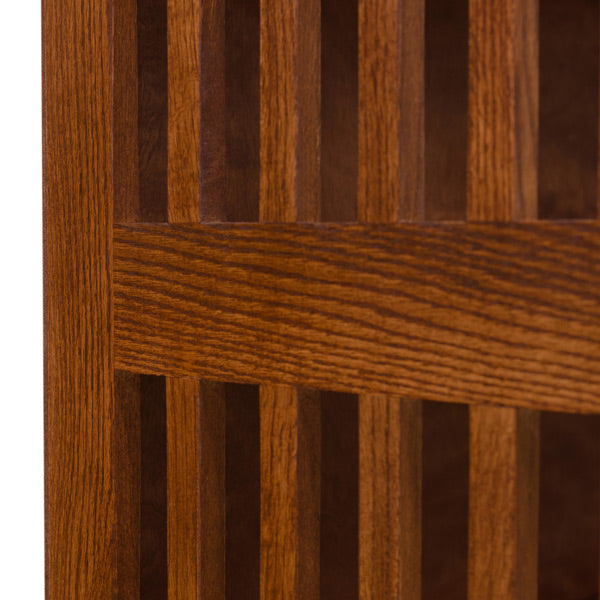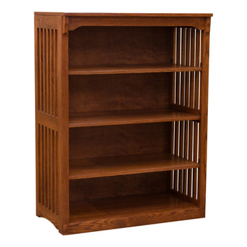Built to last, this elegant bookcase, have three adjustable shelves for getting things neat and organized. Made from solid oak and plywood back is crafted in the United States. This piece is a perfect example of the classic Arts & Crafts movement made popular at the turn of the last century.