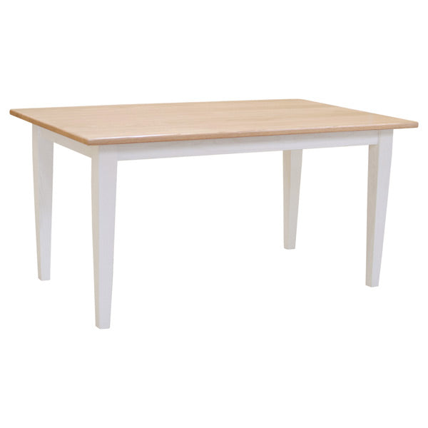 This 36" x 60" Amish Two tone Harvest Shaker Dining Set is constructed by skilled Amish craftsmen using solid Red Oak wood (shown). The overall style of this particular dining set is reminiscent of the classic Shaker design emphasizing elegance through simplicity. In addition, this is a sample of what we can custom made for you. You have a variety of choices of wood, finish and size. The table top is in a natural stain while the table base color is painted in white.