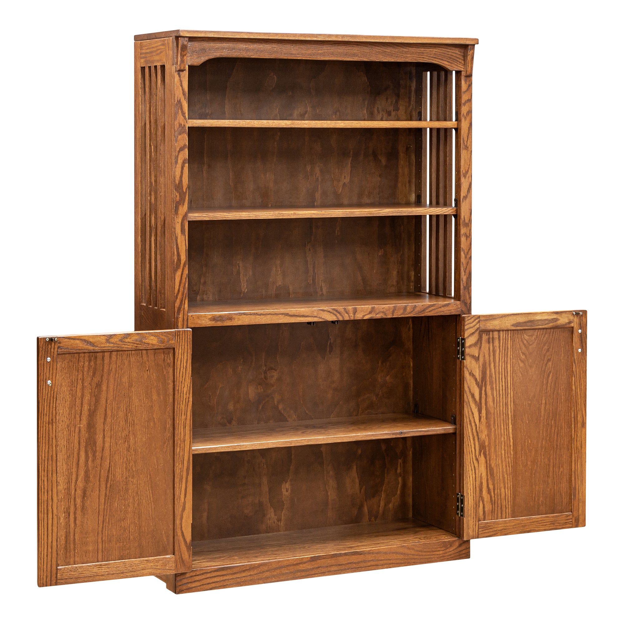 Utilitarian yet aesthetic, this solid oak 36" x 60" x 12", 4 shelves, mission spindle bookcase is nostalgic of the Arts and Crafts movement. In perfect Arts and Crafts fashion of distinctive functionality and undeniable durability, flush sides allow this piece to sit completely adjacent to another wall unit.