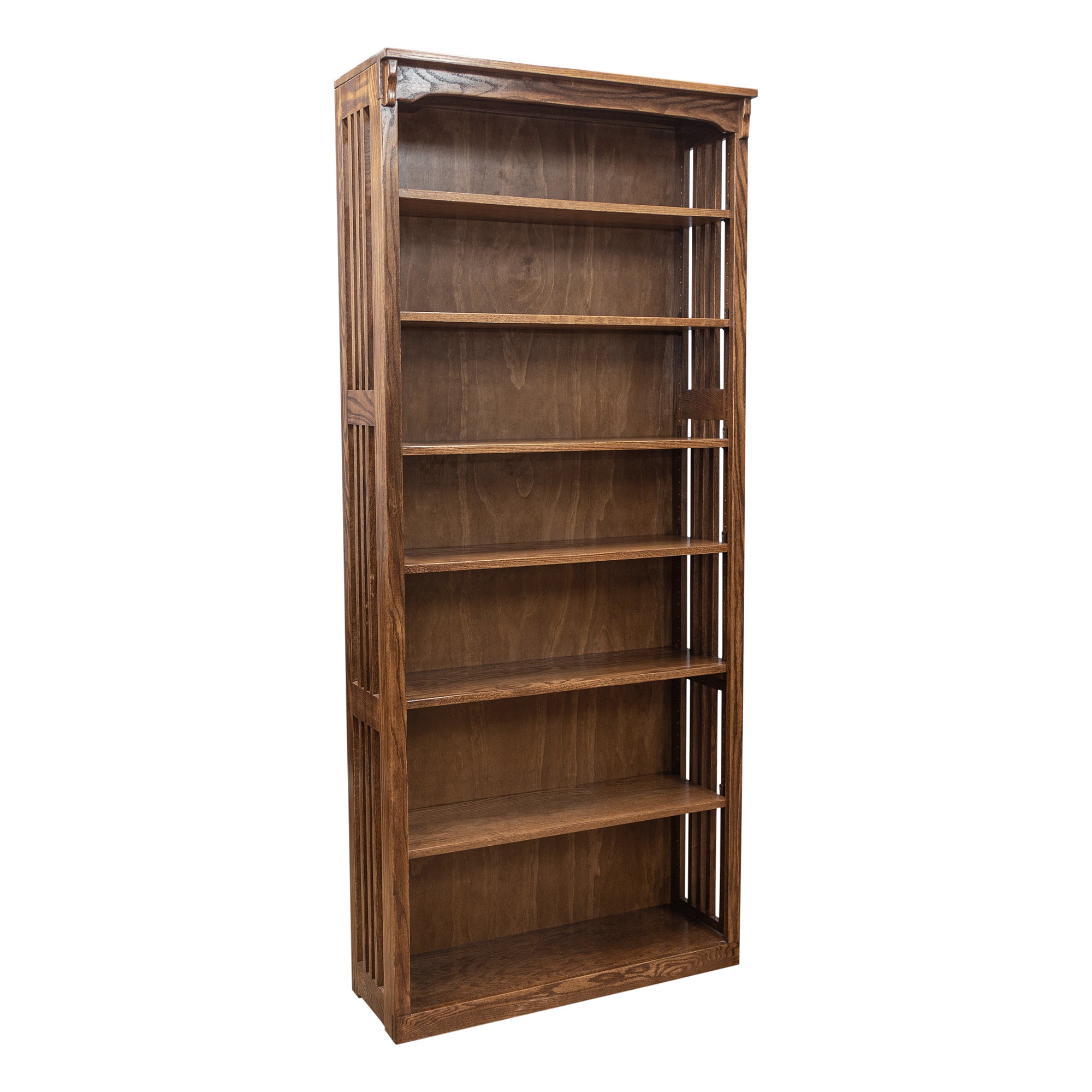Utilitarian yet aesthetic, this solid oak 36? x 84?, 6 shelf, mission spindle bookcase is nostalgic of the Arts and Crafts movement. In perfect Arts and Crafts fashion of distinctive functionality and undeniable durability, flush sides allow this piece to sit completely adjacent to another wall unit.