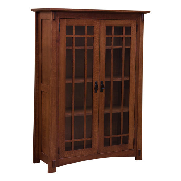 This 38" Amish Mission Bookcase w/Waterfall Glass Doors. is proudly made in the United States from exceptional craftsmanship and remarkable quality. The design of this furniture creates a simple, yet elegant look. Hand made using solid oak by highly experienced Amish Craftsmen in the Heartland of America and you can take pride in owning furniture built to the highest standards of quality.