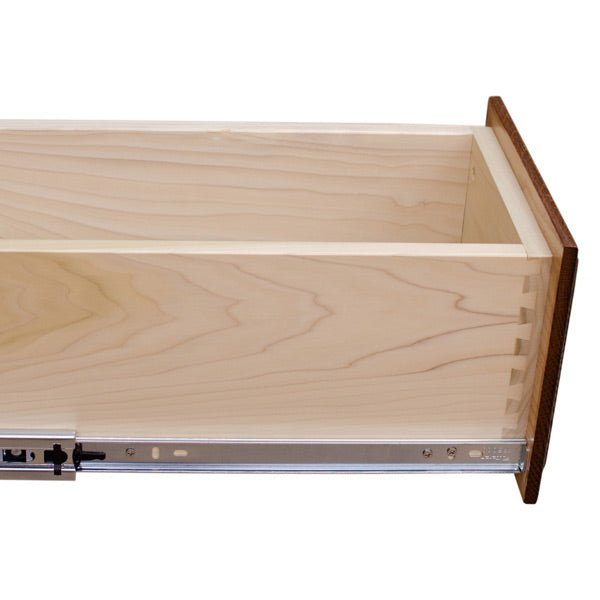 All the drawers have an English dovetails with a full extension glides. In addition to that, it is pair up with the standard Black Mission Handle that normally associated with the Mission Style look. And lastly, it is proudly made in the US and can be custom made to any finish, size and woods.