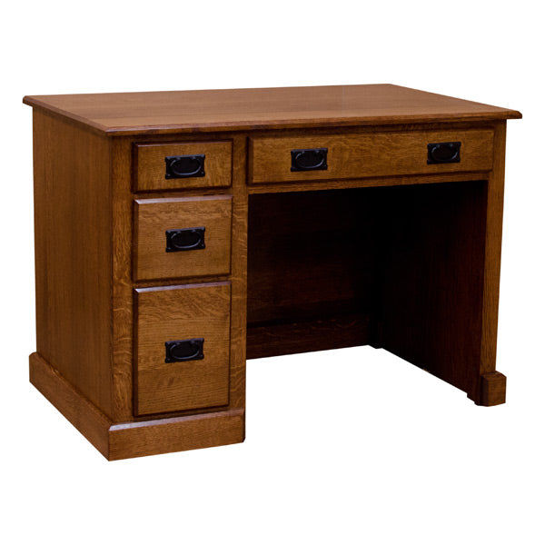 A exquisite beautiful desk added in our Mission style furniture collection. This is a great desk that is perfect for a small room. The characteristics of this sturdy desk are a long drawer, small drawer, a medium size drawer and a filing cabinet. It is constructed by highly skilled craftsman with the use of solid wood Quartersawn White Oak.