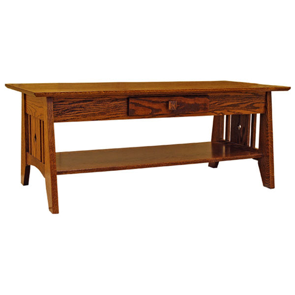 This Amish Coffee Table reminiscent of the Crofter A-Frame design displays an elegance and simplicity that has stood the test of time. This Amish Coffee Table is constructed out of solid Plain Cut Oak (shown) and built to the highest standards and with strictest attention to detail; you can take pride in owning this piece.