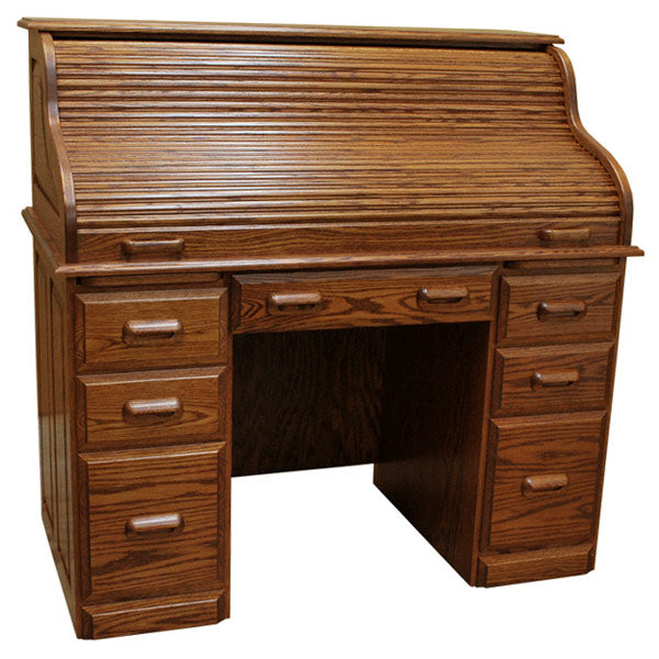 This 48? Amish Standard Roll-Top Desk is proudly made in the United States by highly experienced Amish Craftsmen. It is constructed using solid Plain Cut Oak (shown). This Amish handmade Roll-Top Desk boasts an unparalleled level of craftsmanship and you can take pride in owning furniture that's built to the highest standards and with the strictest attention to detail.