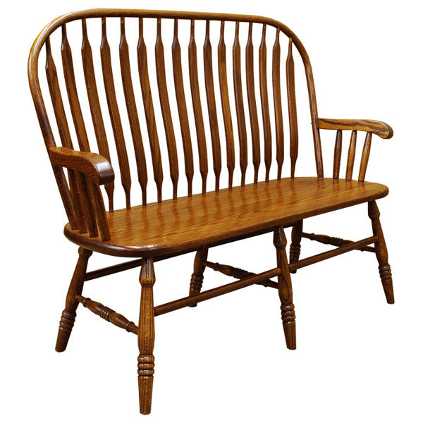 This handmade Amish 48? Jumbo Bench w/ arms is skillfully constructed with sturdy solid Red Oak (shown) by highly experienced Amish Craftsmen in the Heartland of America. This bench remains true to the Arts & Crafts movement and demonstrates a classic yet timeless traditional design. This exceptional durable Amish Bench features a sealed conversion varnish that protects this elegant piece from water, oil, alcohol and even nail polish. You can take pride in owning furniture built to the highest standards and with strictest attention to detail.