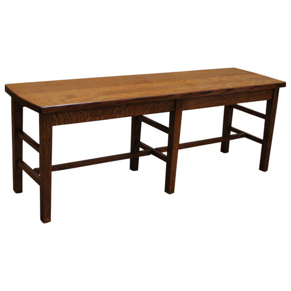 This handmade Amish 48" Amish Mission Bench is skillfully constructed with sturdy solid Quarter Sawn Oak(shown) by highly experienced Amish Craftsmen in the Heartland of America. This bench remains true to the Arts & Crafts movement and demonstrates a classic yet timeless traditional design. This exceptional durable Amish Bench features a sealed conversion varnish that protects this elegant piece from water, oil, alcohol and even nail polish. You can take pride in owning furniture built to the highest standards and with strictest attention to detail.