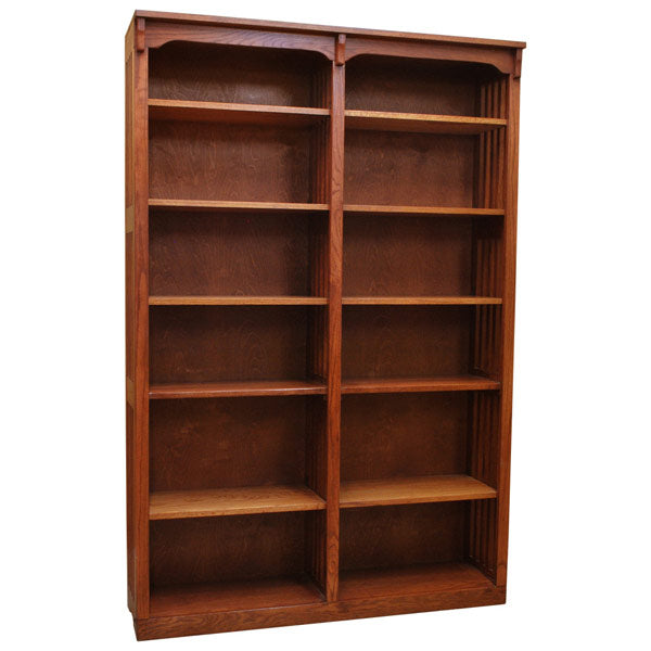 Utilitarian yet aesthetic, this solid oak 48" x 72" mission spindle bookcase is nostalgic of the Arts and Crafts movement and features 10 adjustable and 2 fixed shelves. In perfect Arts and Crafts fashion of distinctive functionality and undeniable durability, flush sides allow this piece to sit completely adjacent to another wall unit.