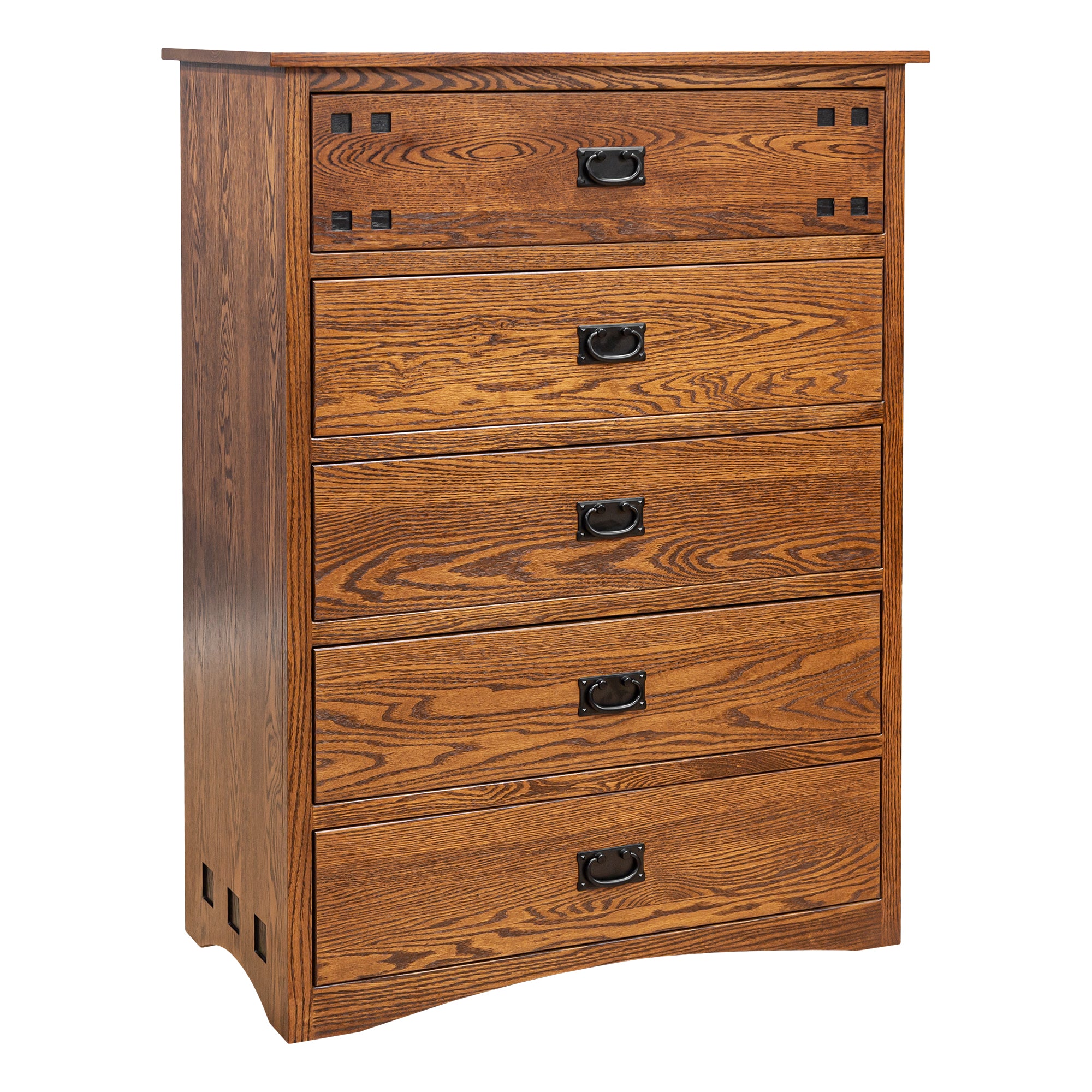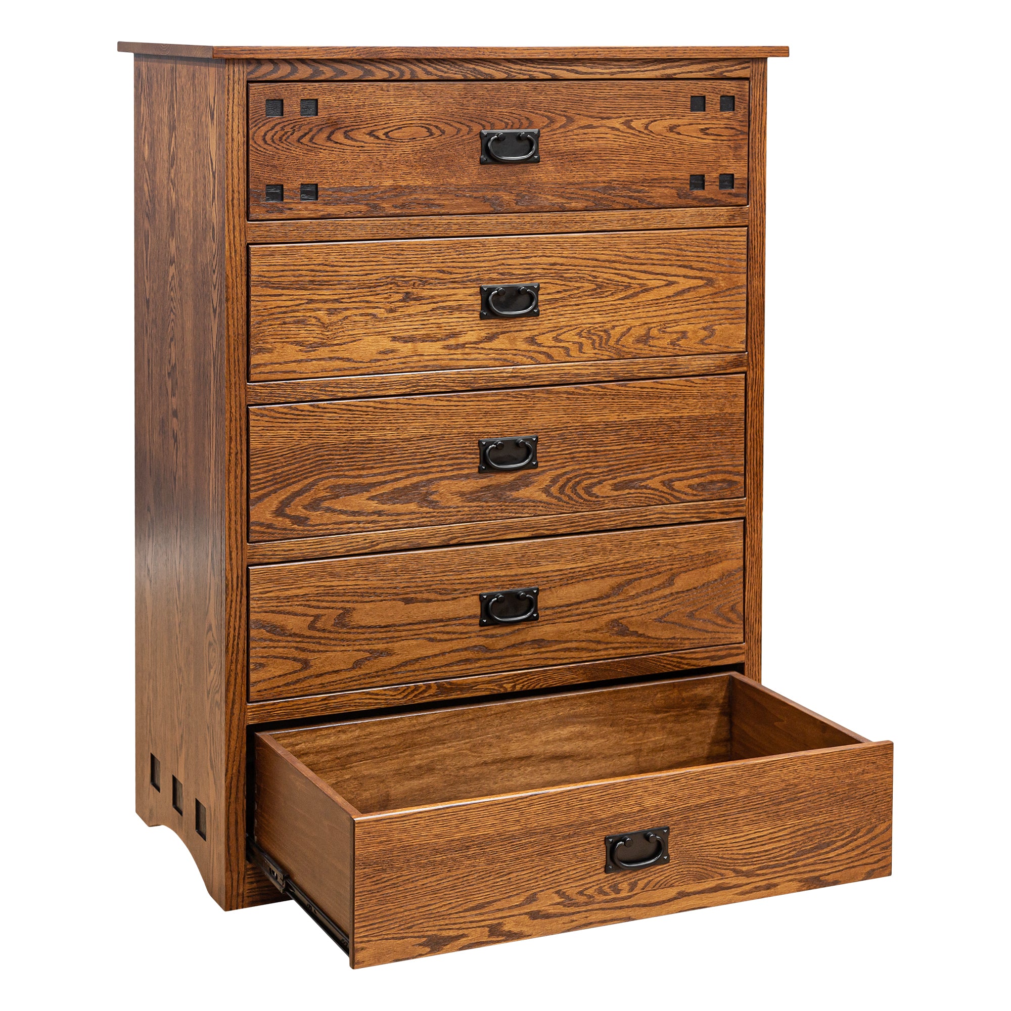 This Amish-crafted 5-Drawer Chest features solid drawers that include traditional English dovetail joints. The drawers sit on full-extension drawer guides that easily glide open and shut with no exertion necessary. This piece is sealed with a conversion varnish that protects it from water, alcohol, and even nail polish remover.