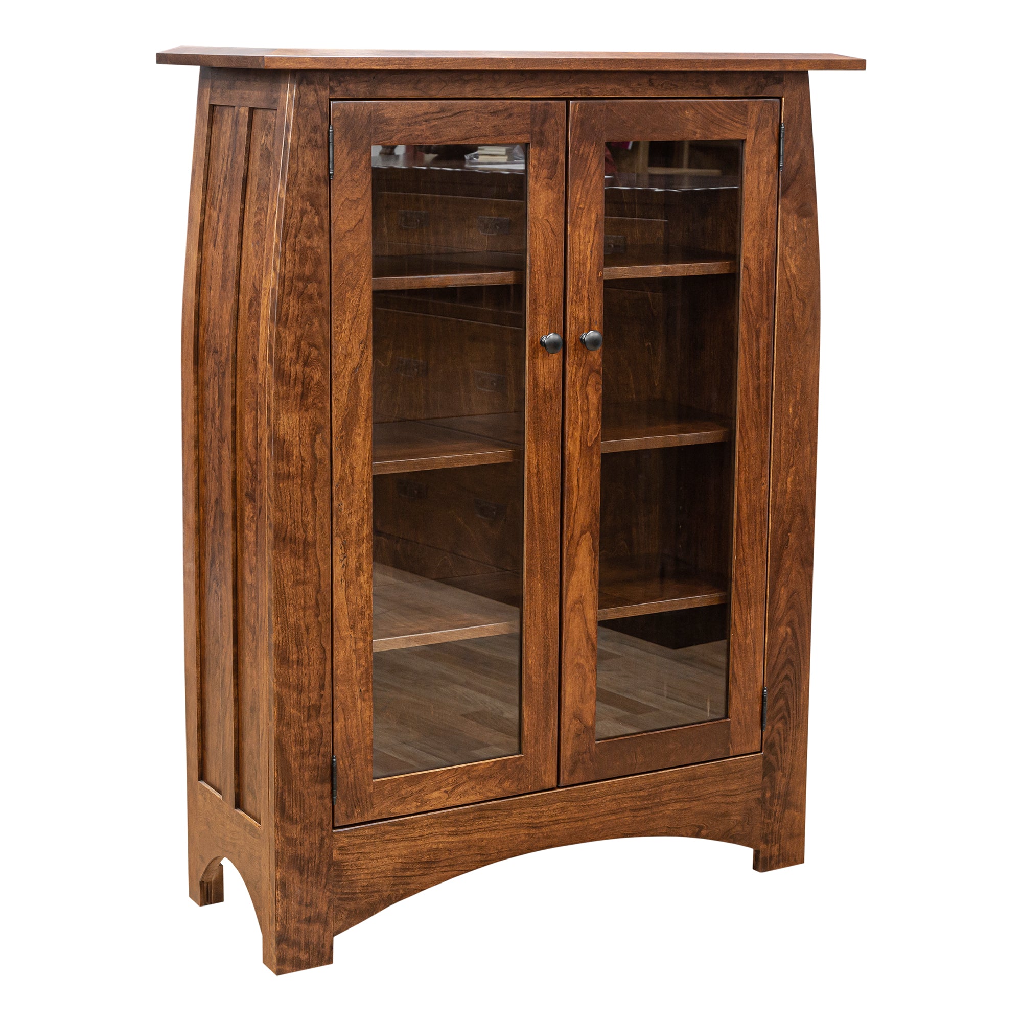 This curvaceous Bookcase is part of our Aspen Series. It is shown in Character Cherry with the OCS 113 stain. Character wood is the cut closest to the log. There will be knotts which i cannot control the size and placement for it. You can get this with Regular cherry wood without the knotts for much an additional cost.