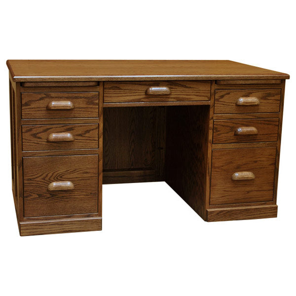 This 52? x 30? Amish Traditional Seven Drawer Desk is proudly made in the United States by highly experienced Amish Craftsmen. It is constructed using hand selected Solid Red Oak (shown). This Amish handmade Desk boasts an unparalleled level of craftsmanship and you can take pride in owning furniture that's built to the highest standards and with the strictest attention to detail.