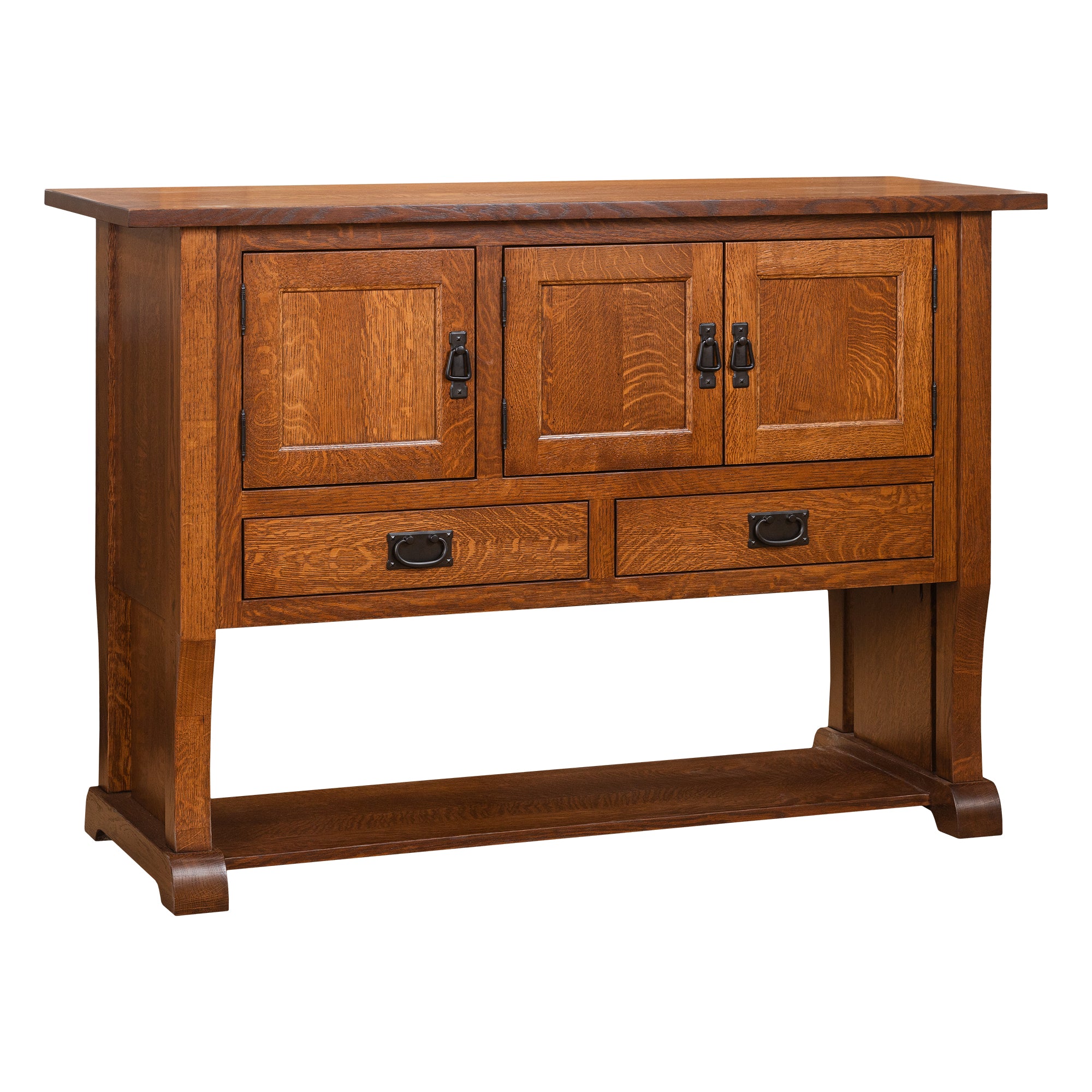 This 54" Amish Mission Server boasts an unparalleled level of craftsmanship in handmade furniture. Skillfully constructed by highly experienced Amish craftsmen using solid Quarter Sawn White Oak (shown), you can take pride in owning furniture built to the highest standards with the strictest attention to detail.