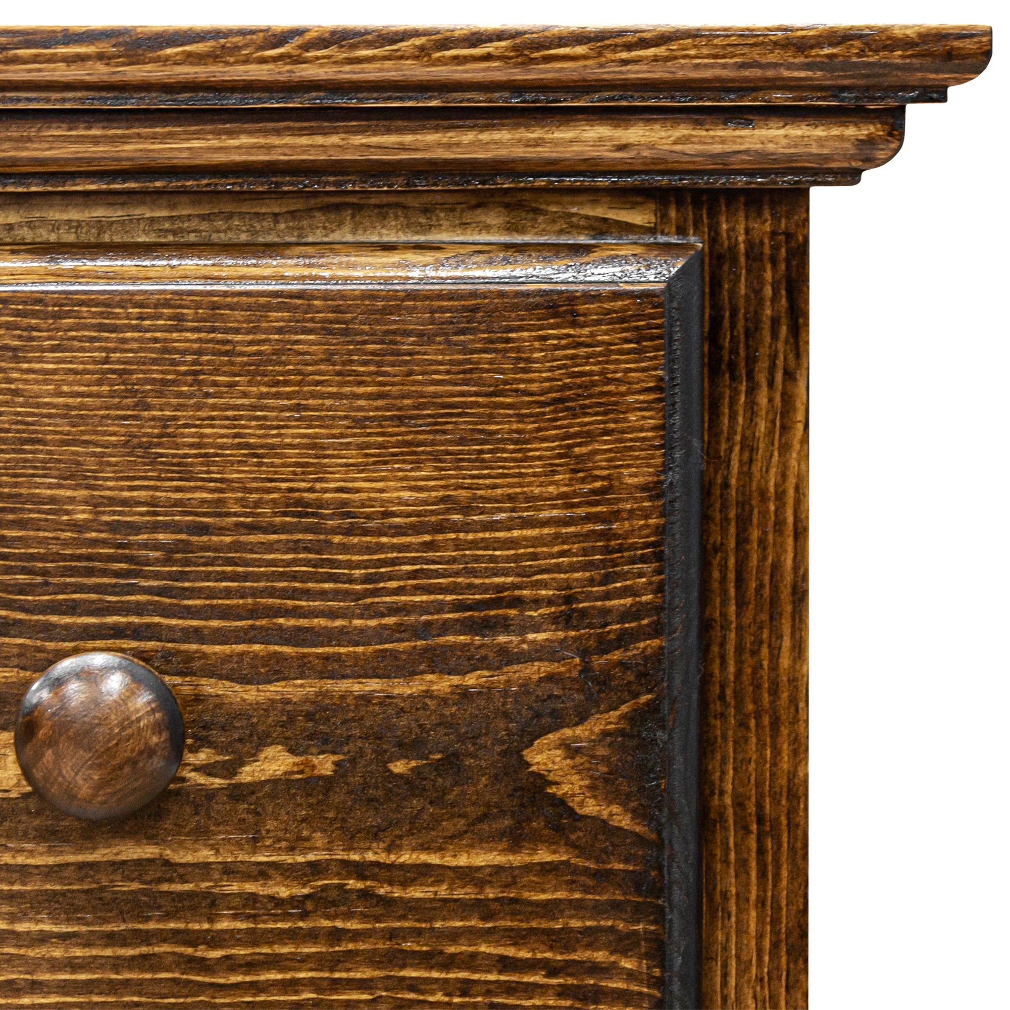 This lovely Six Pine Drawer Dresser with wood knobs is a simple and functional to own. It shows off the grain pattern of Pine with its natural stain finish. Each piece is unique due to different placement of knots in the unit. And lastly, this can come in a variety of eight finishes with additional charge.