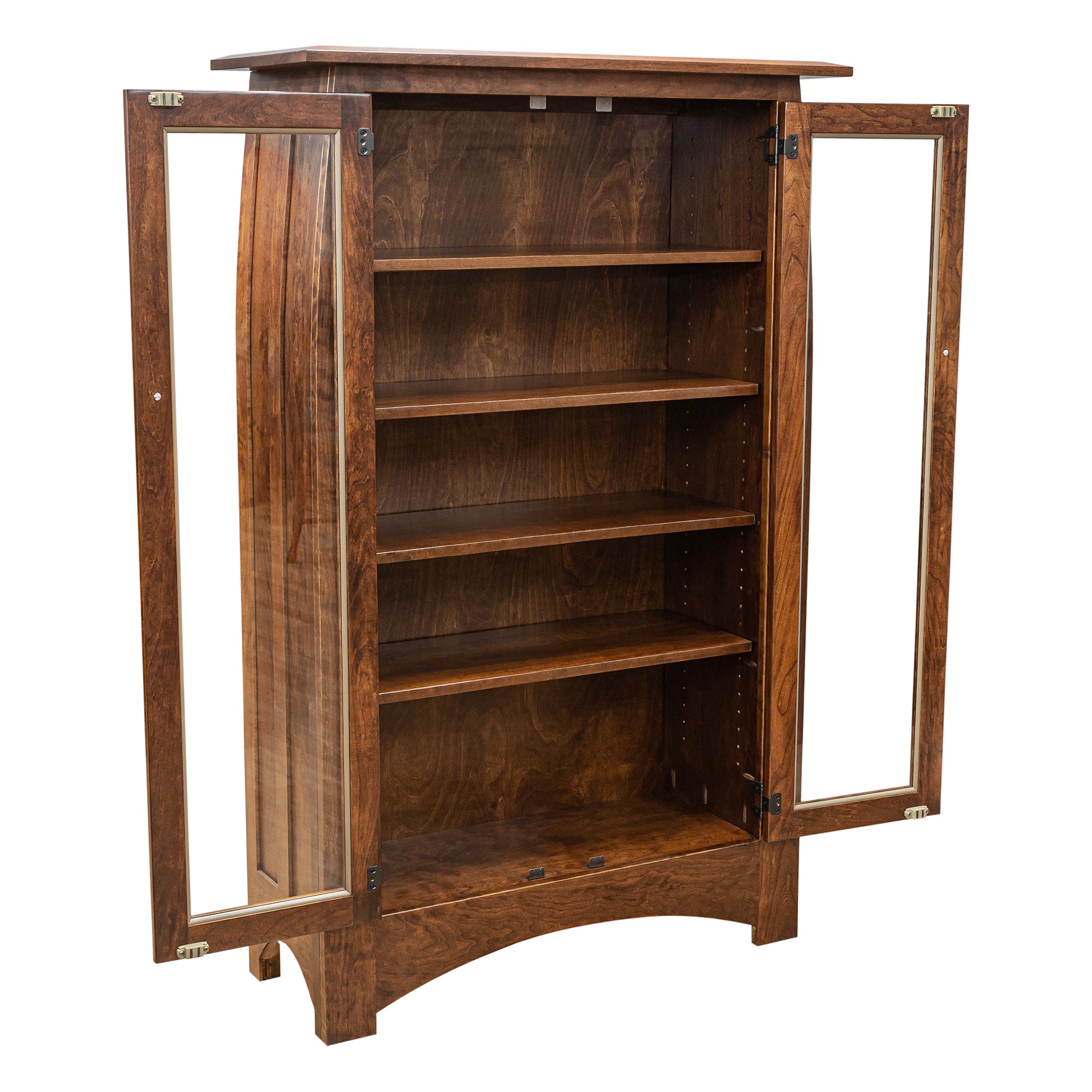 This curvaceous Bookcase is part of our Aspen Series. It is shown in Character Cherry wood in the OCS 113 stain. .