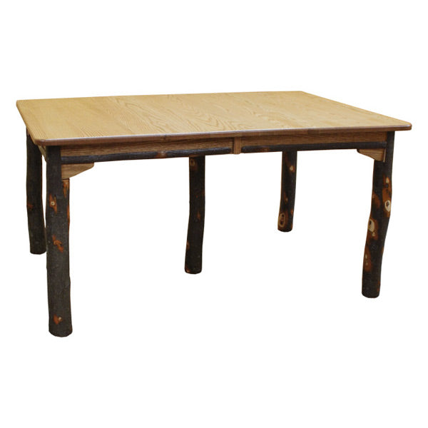 This 60" Amish Hickory Dining Table w/ 4-Leaves is skillfully constructed by highly experienced Amish Craftsmen. This Hickory Table is exceptionally unique not only because of its genuine antique design, but because it is made from the hardest of all North American Harwood. The legs are constructed from the suckers of Hickory trees - a material that is harvested limitedly in certain seasons.