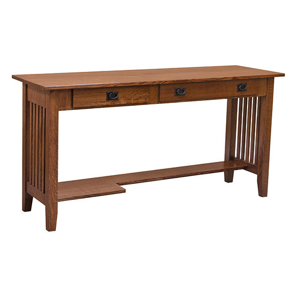 This 60? Prairie Amish Mission Writing Desk displays a simple yet elegant design that has stood the test of time. This desk is constructed using solid Quarter Sawn Oak (shown) by highly skilled Amish craftsmen. You can take pride in owning furniture that is built to the highest standards and with the strictest attention to detail.