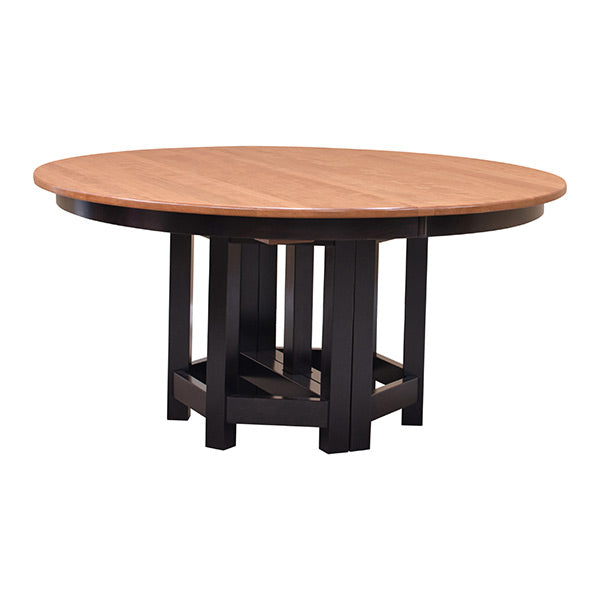 This beautiful 60" Round Amish Greene & Greene Pasadena Gamble Dining Table w/ 6-Leaves is handmade skillfully by highly experienced Amish Craftsmen. Built out of individually hewn solid Pennsylvania Cherry Wood planks with through tenons and exposed ebony square dowel pin joints. This archetypal and timeless dining table is a hallmark to the contributions of the Arts & Crafts movement. You can take pride in owning furniture built to the highest standards and with strictest attention to detail. The detailed woodwork of this classic piece is of that seen in the Gamble House of Pasadena, California. In addition, this table is remarkably unique not only because of its indisputable antique design but because it is made from the hardest of all North American Hardwood.