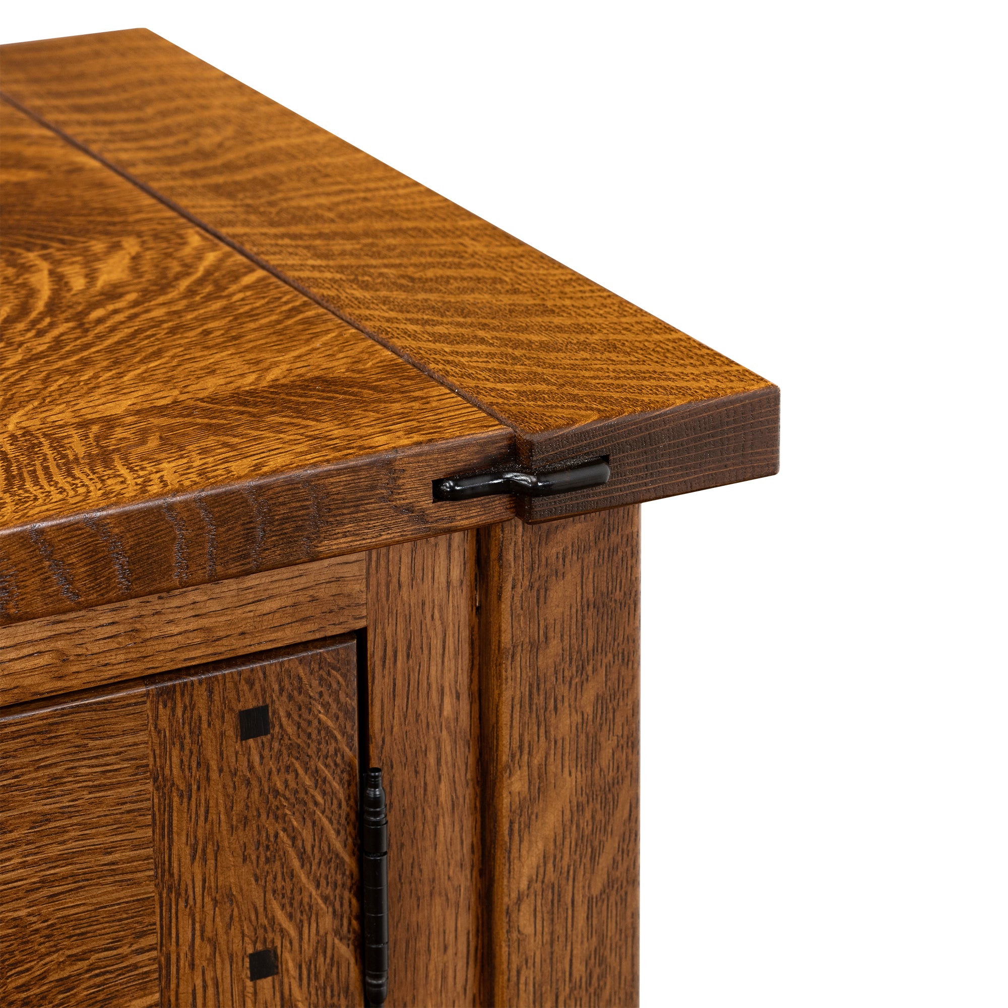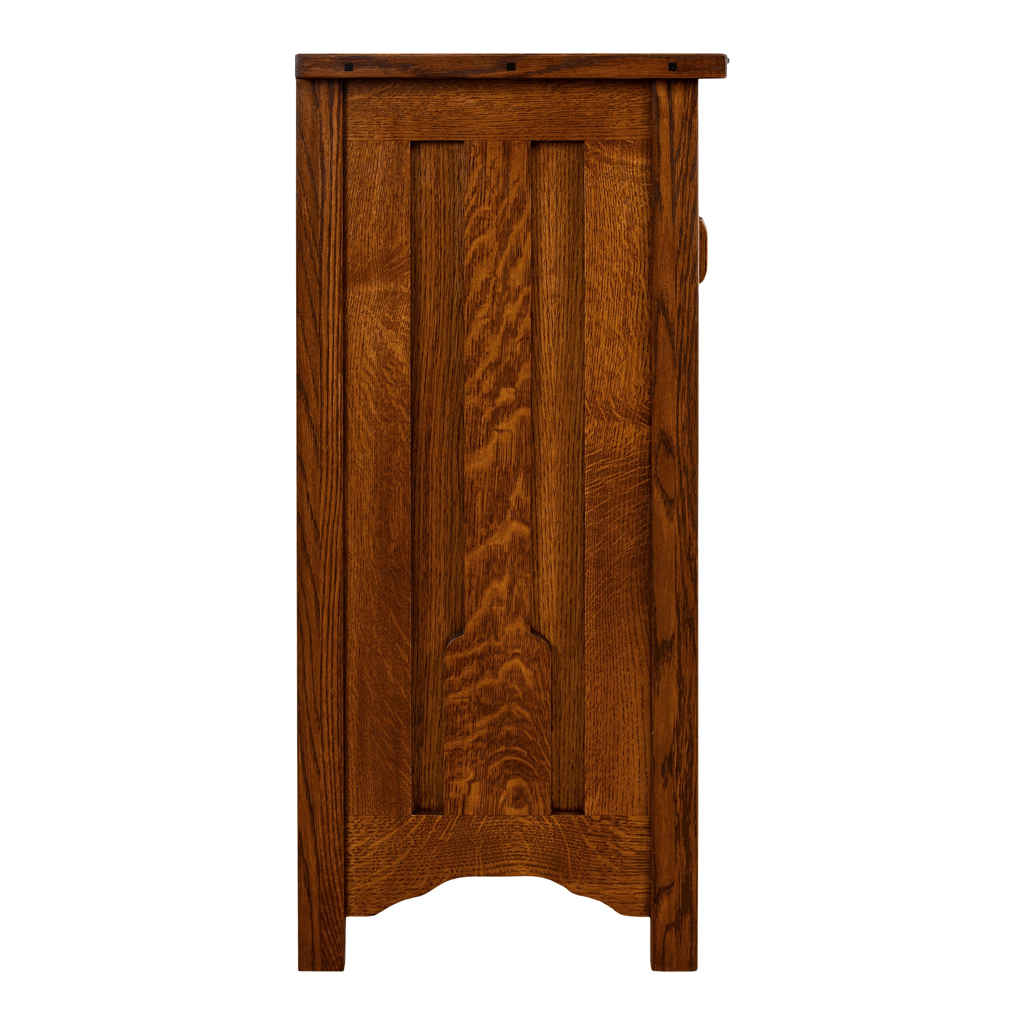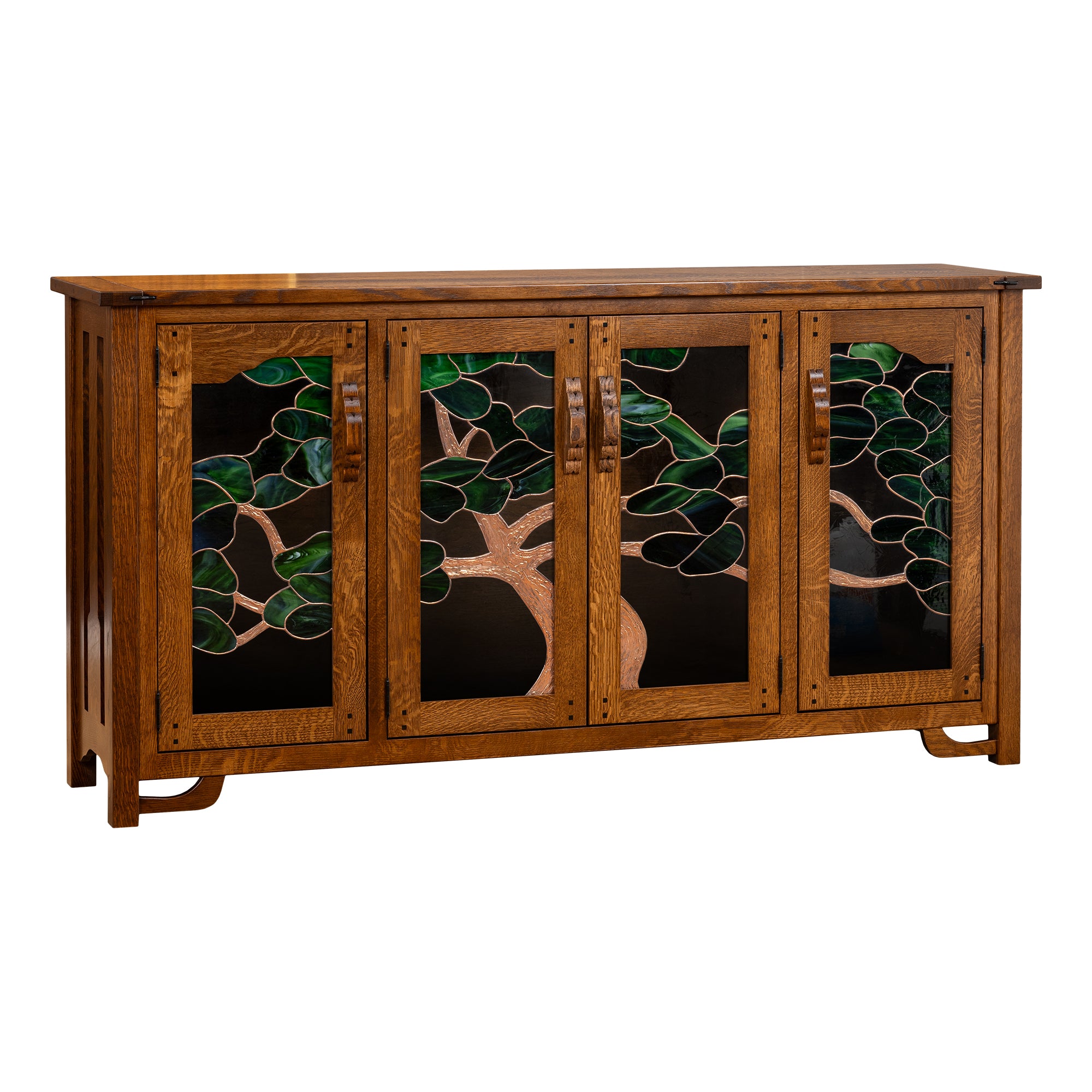 This absolutely gorgeous Greene & Greene Bookcase is something to behold. It's stunningly beautiful and made by Amish craftsman with honed expertise in building furniture. As shown, it is made out of solid Cherry wood that is individually hand-pick to build this TV Stand. In addition, it's adorned with ebony splines and the glass with the famous Tree of Life. This detail is indicative of the Greene & Greene style. Even without the familiarity of this style, you can still appreciate and admire this lovely piece of furniture in your living room.