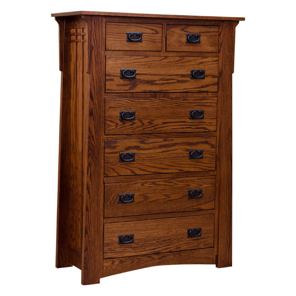 In addition, this is perfect for maximizing clothing storage with limited space. This has seven drawers which offer plenty of space for storing clothes. The drawers are constructed with English Dovetail Joints and have a full extension glides. And lastly, this beautiful unit is beautifully stained in the OCS 113 finish.