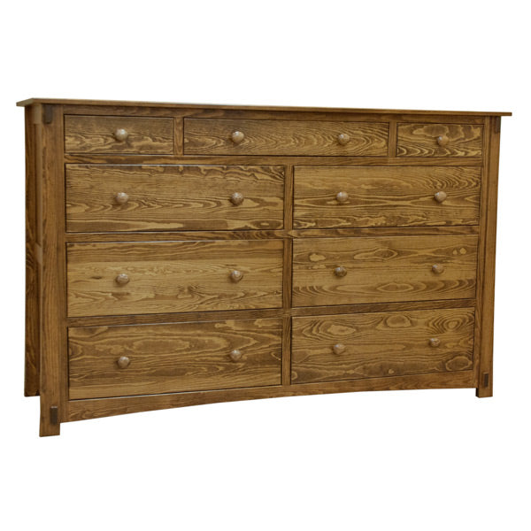 Available to be custom made in a variety woods and finishes, this classic and timeless Amish Pine 9-Drawer Dress offers great storage and functionality in addition to being a lovely addition to your Bedroom.