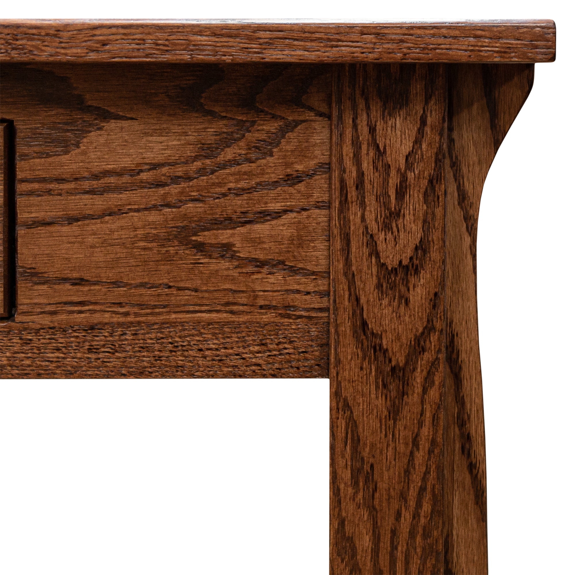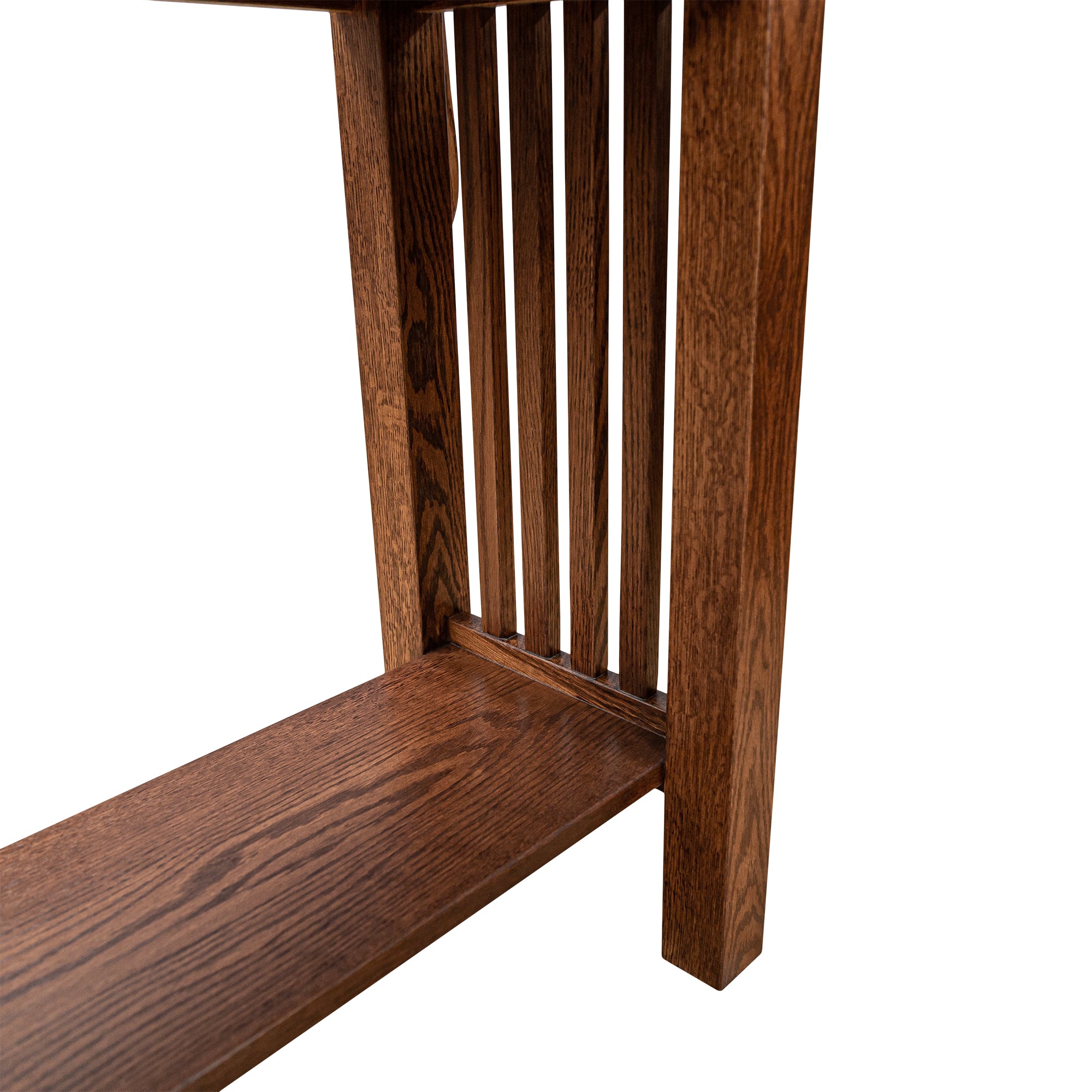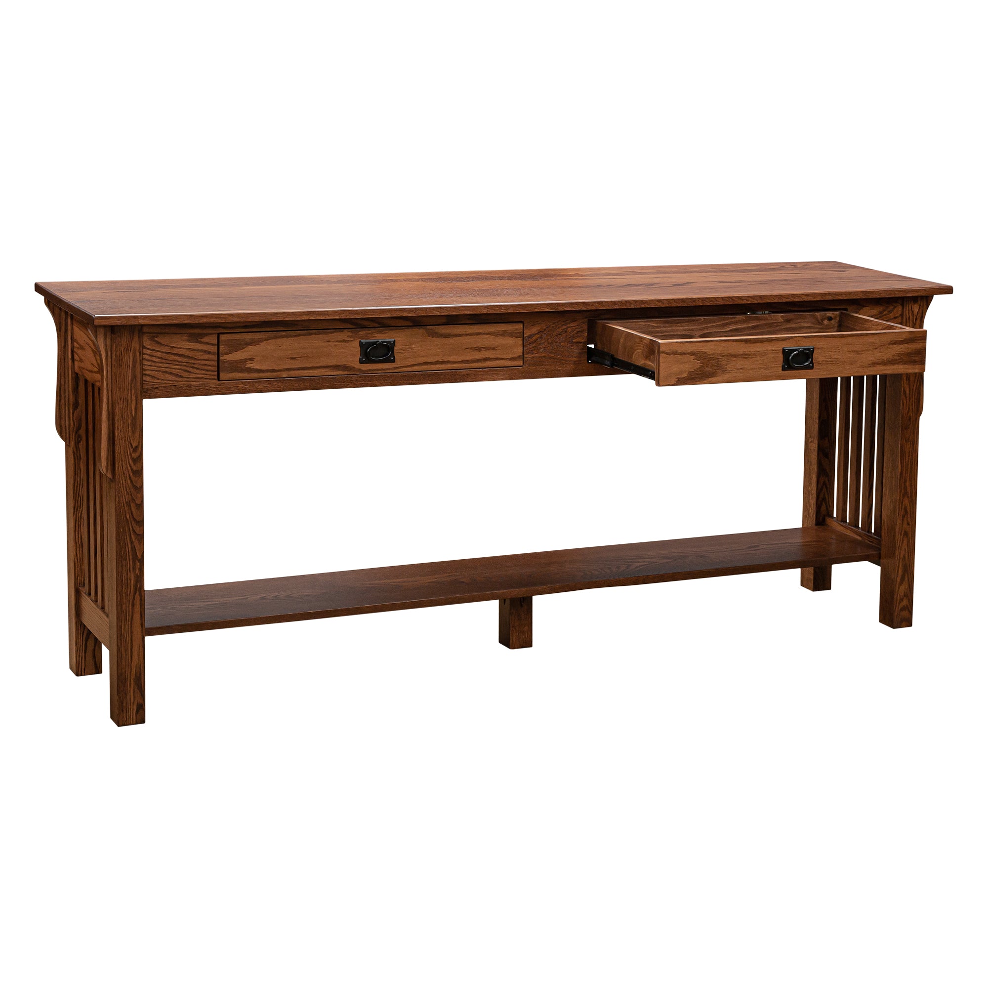 This 72" Amish Mission Spindle Sofa Table w/ 2-Drawers demonstrates a simple yet elegant design that has stood the test of time. This Sofa Table is skillfully constructed by the Amish Craftsmen out of hand-selected Solid Oak. This elegant piece of furniture is built to the highest standards and with the strictest attention to detail.