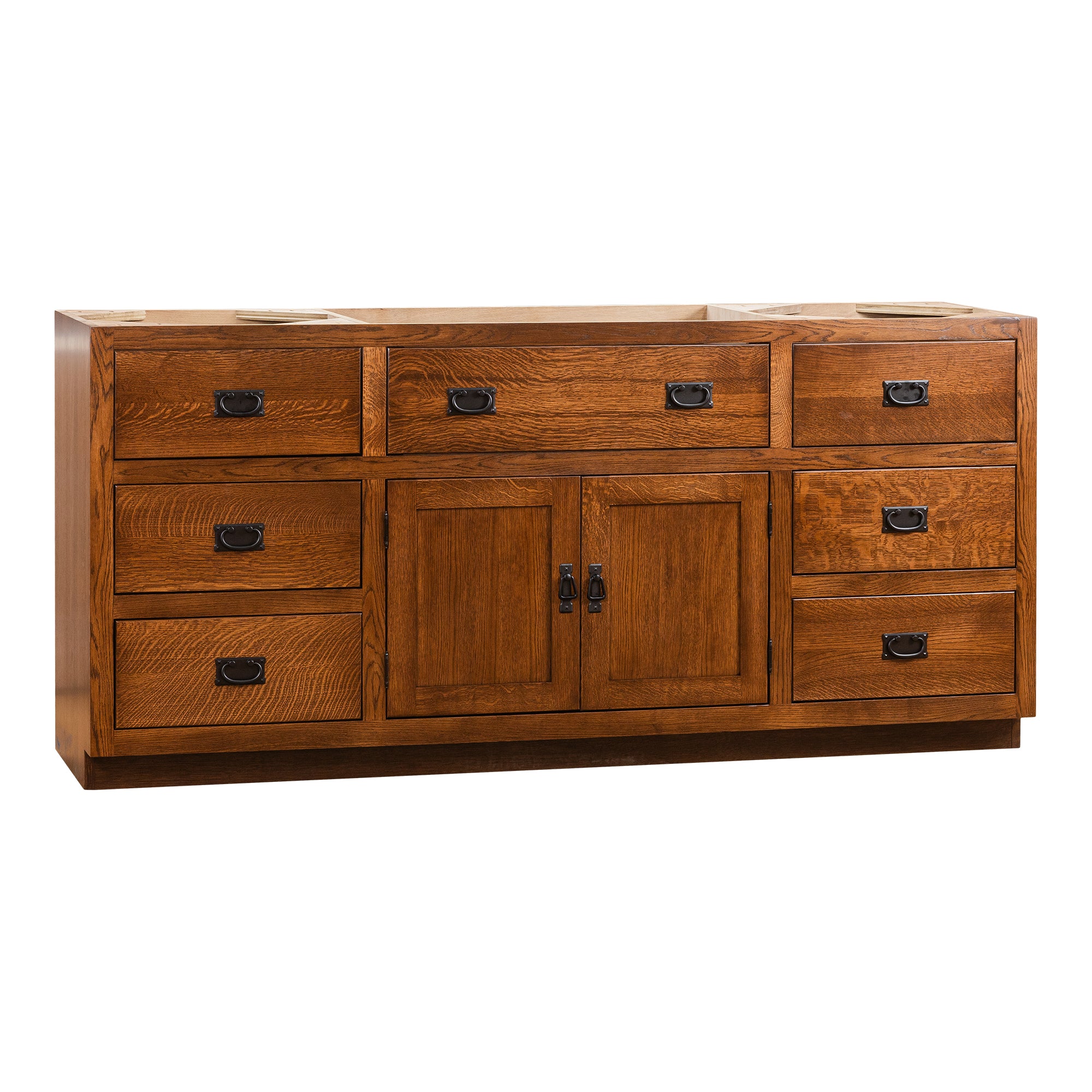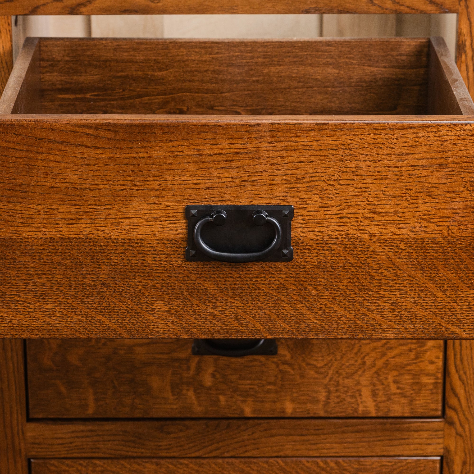Amish Crafted Solid Wood FurnitureTransform your bathroom with this stunning solid wood bathroom vanity built in a timeless mission style. Featuring multiple storage drawers and a spacious center cabinet, this vanity combines beauty, durability, and everyday function. The rich oak grain, sturdy construction, and classic hardware make it a perfect fit for traditional, craftsman, or rustic bathrooms. Ideal for keeping toiletries, towels, and essentials organized while elevating the look of your space.