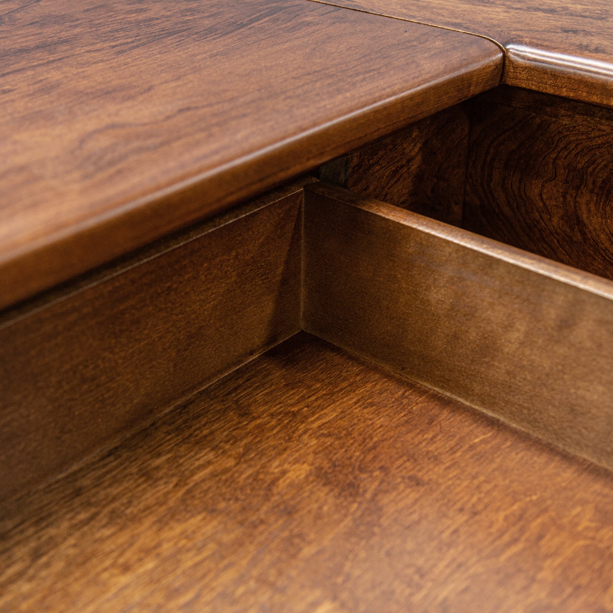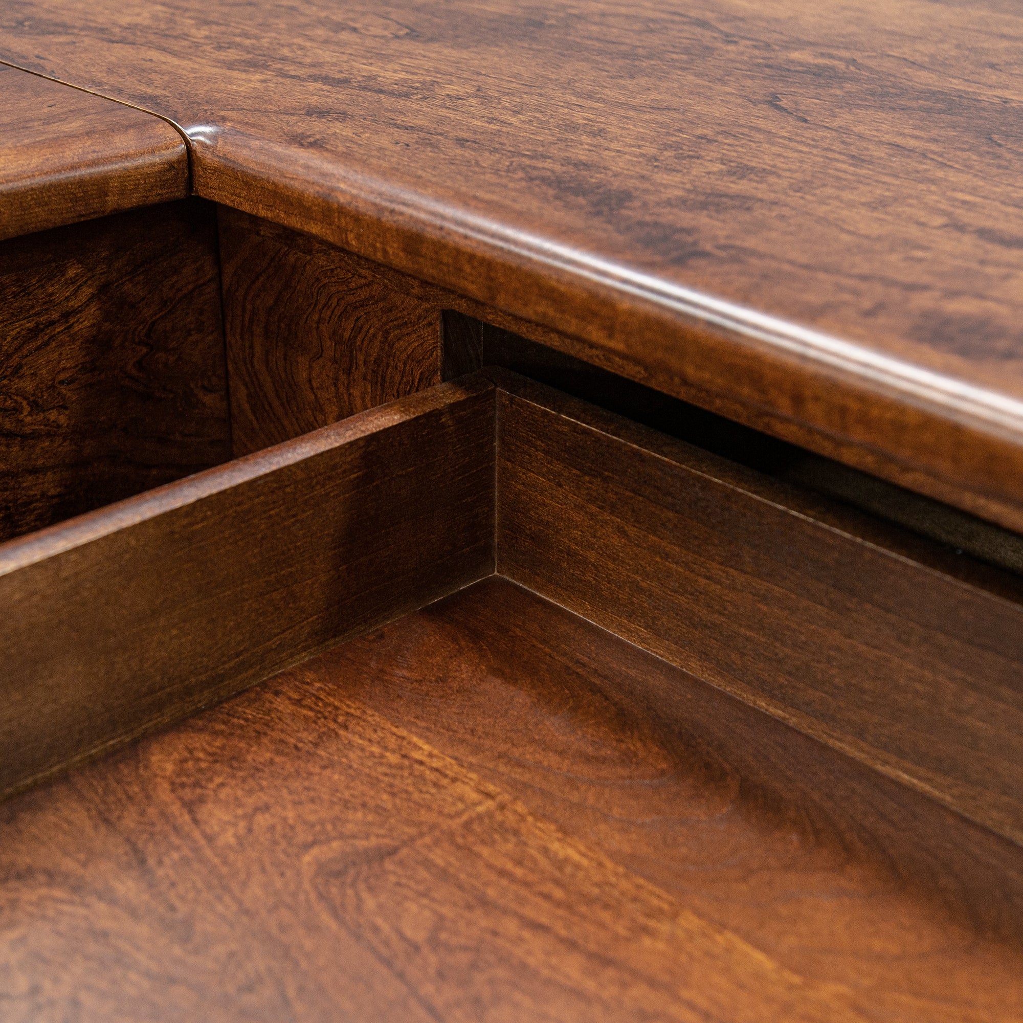 This Amish Hand Made Aspen Writing Desk pictured here is 74" wide x 77" depth and also available in any size and any special details requested. Priced here in Solid Character Quartersawn White Oak however, All woods are available in your choice of Plain Cut Oak, Quarter Sawn White Oak, Walnut, Cherry, or Elm. Color choices are almost unlimited (see below). Call for Quotation for changes. This unique design harkens back to the mid 20th Century but will be at home in any Architectural era where wood and simple curves catch the eye. We can build any piece of furniture in this design.