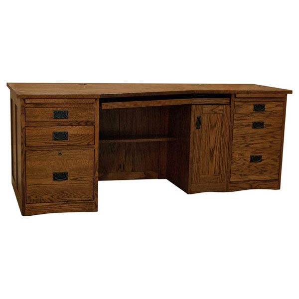 This 80? Amish Mission Wedge Desk is proudly made in the United States by highly experienced Amish Craftsmen. It is constructed using Solid Oak. This elegant yet durable desk is sealed with conversion varnish that protects this piece from water, oil, alcohol and even nail polish. In addition, the drawers on this desk have English dovetails and sit on full-extension ball bearings that gently and easily open and shut.