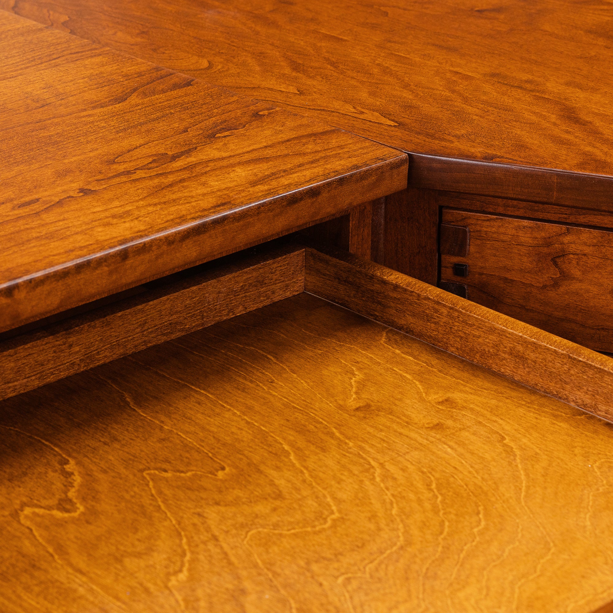 This solid wood 80" x 80" Greene & Greene wedge desk showcases exquisite craftsmanship and timeless design. Built with authentic joinery, gently curved edges, and rich hand-rubbed finishes, it offers both beauty and function. With multiple drawers for storage and an expansive workspace, this desk brings elegance and practicality to any office.